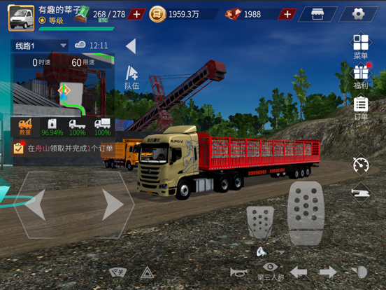 卡车人生是一款多人在线真实卡车模拟驾驶游戏。玩家可以驾驶各式各样的中国卡车在开放世界无缝地图上完成各种任务,欣赏风景及结交朋友。 1. 纯3D的开放世界 游戏拥有拟真还原的无缝中国地图,多人同时在线探索世界的玩法。 2. 车队系统 作为一款多人在线的卡车模拟器,所有玩家都可以自由组建车队,共同完成任务,共同解锁更多城市, 3. 24小时真实天气系统 作为最真实的模拟驾驶手游,天气会随着时间变化而变化,也可能一天之内同时经历风霜雨雪,最真实的模拟驾驶手游。 4. 各式卡车任君驾驭 不同于欧洲卡车,玩家将有机会驾驶中国特色各类卡车徜徉于各个城市,体验真实的卡车人生。 5. 真实的卡车授权 联合卡车和现代商用车等正版授权车辆已经加入游戏,后续或将有更多的卡车品牌和车辆加入。 6. 特殊的地图和货物设计 不同于其他模拟驾驶手游,卡车人生拥有无缝衔接的超大地图,并且涵盖中国绝大多数的主要城市,运输的货物也非常具有中国的各地特色。 7. 卡车改装系统 独特的卡车改装,包含卡车强化,更改颜色,车辆涂装,车身LED包围车灯,各种有趣的外饰和内饰等。 【联系我们】 官方QQ群:927826647版本更新日志 1、新增广东省广州城市圈地图,含韶关、清远、广州、肇庆、云浮五个地区; 2、新增限定授权牵引车新一代创虎; 3、新增动态涂装[街头潮流][霓光幻灵]、静态涂装[广东广州塔][广东丹霞山]; 4、自动货运功能新增倒计时显示; 5、优化调整: 优化自动货运功能在高速路段的限速情况; 调整部件洗练的费用; 6、BUG修复: 修复斯凯途S730配件轮胎最后一轮装饰未适配问题; 修复私聊中玩家角色名显示异常问题; 修复自动驾驶提示文本错误问题; 修复自动驾驶燃油不足或驾驶分不足时仍继续驾驶的问题; 修复点击聊天栏玩家信息后车队名字错误问题; 修复货运页面车辆和显示运费不匹配问题。