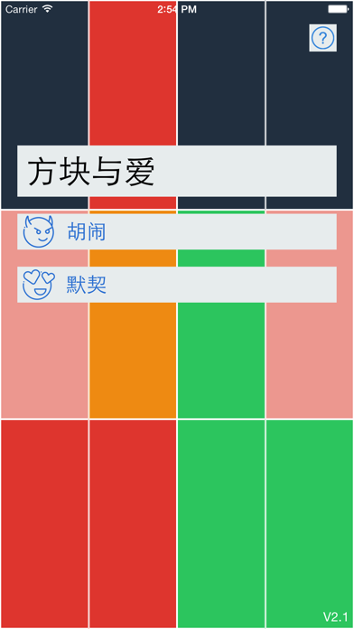 方块与爱是一款简单容易上手的双人互动小游戏,在相同Wifi或热点,蓝牙即可连接,无需联网,适合两人在无聊情况下打发时间。 「方块与爱」志在促进情侣或朋友间交流。如果你愿意,请将此游戏分享给你的朋友,两人靠在一起,连接同一Wifi或者热点甚至蓝牙,参与游戏互动吧 「胡闹」模式:疯狂抢占方块。将方块染为自己的颜色,维持一定抢占数量三秒即获胜。 「默契」模式:合作交换方块。将对方方块染为自己的颜色,同一层全部交换完毕后进入下一层。点到自己的方块将重新开始。 如有任何建议或BUG反馈,欢迎发送邮件至:misuqian@gamil.comApple 已更新此 App 以显示 Apple Watch App 图标。 全新版本,体验优化: 1.界面UI大修改 2.修复了联机可能出现的闪退的情况 2.优化了游戏开始时间不同步问题 3.优化了游戏中延迟较大问题 4.增加暂停,重新开始功能 5.增加时间限制功能 如果你喜欢方块与爱,请将它分享给身边的朋友。谢谢大家的支持