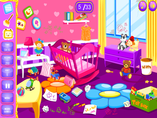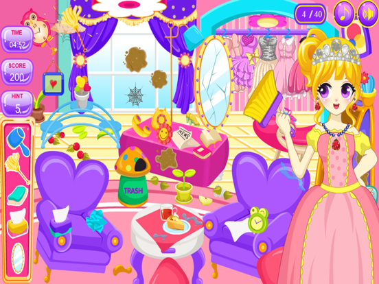 你想知道打扫大房子是什么感觉吗? 好吧,如果你这样做了,那么你会喜欢这个新的清洁游戏,所以准备好你的清洁手吧! 通过清理公主房间,看看你能以多快的速度击败时钟。 如果您遇到困难,您最多可以使用 5 个提示来检查不确定的地方。 扔掉垃圾、整理壁橱、拉直枝形吊灯等等,让您的皇家套房成为一个有趣而干净的居住场所。 特征: - 清理烂摊子并将垃圾扔进皇家粉红色垃圾桶。 - 整理枕头和椅子并拉直枝形吊灯 - 把地板扫干净,留下好印象 - 与时间赛跑,看看您是否可以在房间用完之前快速打扫房间 - 享受清理烂摊子和挑战自己的乐趣 - 使用提示按钮来帮助查看所有东西都必须放置的位置。* Small update on multi languages * Fixed minor issue