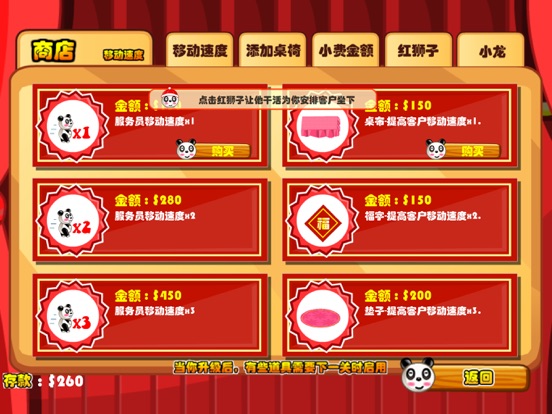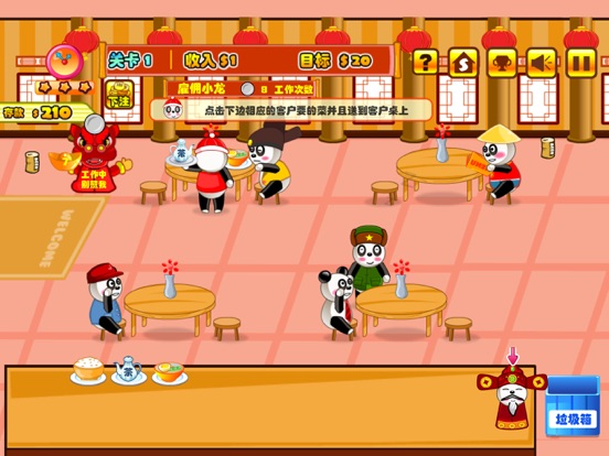 熊猫大餐馆第三部强势来袭!大熊猫开的餐馆因为生意非常火爆,所以连锁店也慢慢开了起来,可是靠大熊猫一个人怎么忙得过来。大家来一起帮帮它让生意更好吧! 鼠标左键安排顾客就位/为顾客服务/打扫餐馆卫生。Apple 已更新此 App 以显示 Apple Watch App 图标。 1.为iphoneX手机优化设计 2.修改了已知的bug