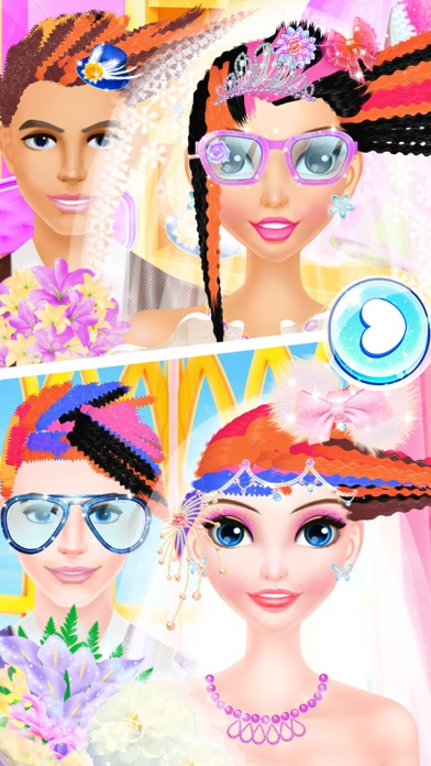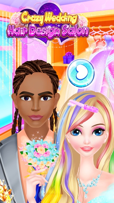 今天在我们全新的美发游戏里,你将有机会为即将结婚的情侣们设计各种疯狂的造型。尽情展示出你的美发技能吧。首先,你可以选择最配对的情侣。点击男孩和女孩的头像来搭配,如果速配指数高的话,你就会迅速的看到冒出来的心形,情侣也会有亲密的举动。反之,如果速配指数不高的话,就不会有明显的亲密举动。接下来,你可以在美发沙龙里尽你所能的给他们设计各种发型。清洁好他们的头发并用吹风机吹干。用剪刀或者美发棒来给女孩设计发型,选择各种新潮的颜色来给他们的头发进行染色。同时你也可以点击转换按钮来选择给男孩设计发型。之后,你可以帮新娘和新郎选择各种发饰和饰品来进行装饰。发型设计结束之后,帮他们选好漂亮的礼服和饰品来穿衣打扮。最后,展示给我们美丽的新娘和帅气的新郎吧。 特征: 1. 选择最般配的男孩和女孩 2. 帮助他们设计疯狂的婚礼发型 3. 帮助他们穿衣打扮 4. 展示给我们 玩法: 1. 选择最般配的情侣组合 2. 帮助他们洗头发 3. 将头发吹干 4. 用剪刀、剃子或者卷发棒来给女孩设计发型 5. 选择转换按钮来给男孩设计发型 6. 给他们的头发进行染色 7. 用各种发饰和饰品来装饰他们的发型 8. 帮助情侣穿好婚礼的礼服并打扮他们 9. 展示给我们修复漏洞,更棒体验