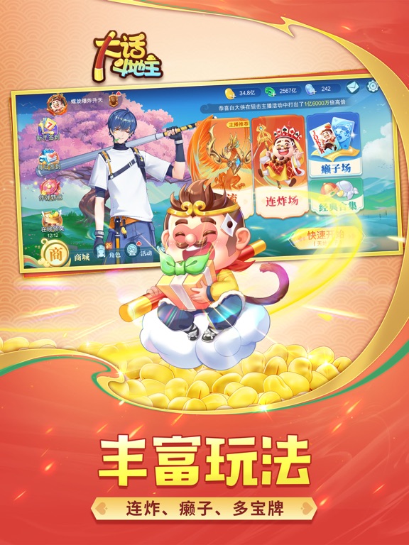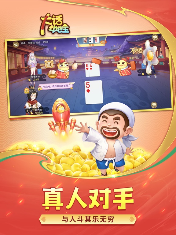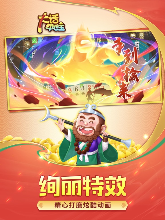 国风二次元大作-大话斗地主,花的少,玩的好 顶尖团队倾情打造瑰丽画风 创新血流多宝牌神马都能胡 斗地主经典玩法一样都不少 万人同场竞技场面异常火爆 天天巨量福利要多少有多少 游戏特色 【血流多宝牌】 丰富的牌型组合:唯我独尊、君临天下、绝代佳人、金戈铁马、凤鸣九霄、吞并八荒、双龙出海、步步生花、龙飞凤舞、穿云破空、烽火连天、日月乾坤、五湖四海,牌型好听又好胡,玩的不是运气而是牌技。 玩法刺激:牌型多偶然性强,任何牌型都有机会反败为胜,胡到飞起 【经典玩法】 不洗牌、经典场、二人场、连炸场一个都不能少 【极致福利】 天天福利:金豆来就送,不氪金也能大杀四方 幸运大转盘:每日都有机会抽中超级大奖 在线奖励:挂机就能领金豆、道具 【国风二次元】 国内顶尖团队打造的极致国风二次元,不但有唯美的人物形象,还有超多的炫酷特效,拥有它马上让您变得与众不同 大话斗地主快来秀一波!1.优化部分用户体验