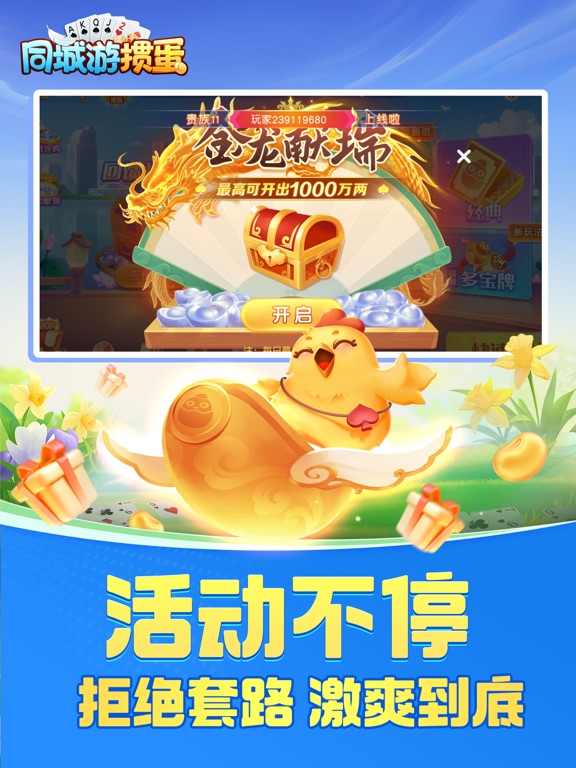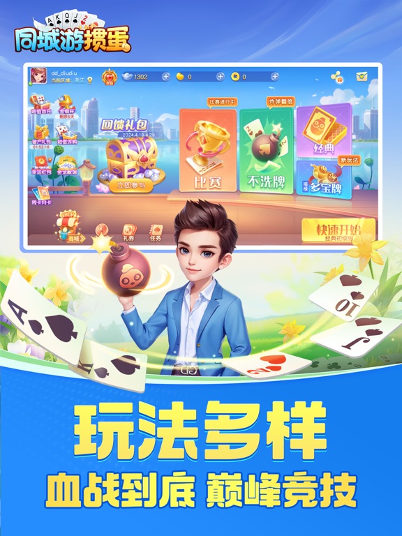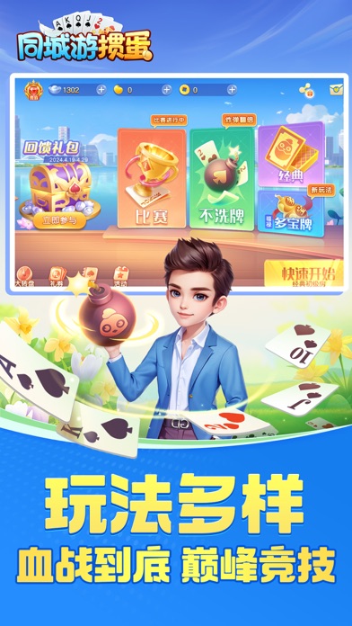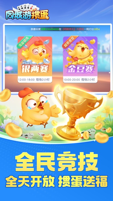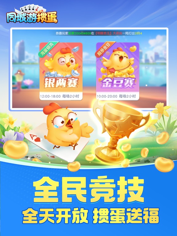 同城游掼蛋,正宗的家乡味掼蛋手游, 除了地道苏皖经典玩法,更是原汁原味复刻每个城市的特色玩法规则,在同城游掼蛋随时随地体验与线下好友掼蛋的乐趣! · 游戏特色 · 【免费游戏】免费!免费!免费!重要的事情说三次,同城游掼蛋每日登录领取银两福利,破产还有补助机会,不需要花钱也能每天免费玩不停。 【玩法多样】经典掼蛋,地方掼蛋,二人掼蛋,不洗牌,团团转,翻倍炸,丢小牌等超多玩法。 【好友约局】正宗淮安掼蛋玩法,极速配桌,呼朋唤友一起来掼蛋。 【理牌智能】横、竖牌理牌方式,一键理牌,同花顺炸弹一目了然。 【专业比赛】专业“蛋位”鉴定比赛,可看自己的掼蛋实力等级,真人大师赛每日开启,奖励多多还有"我是掼蛋王"专属头衔认证。 关注同城游,体验更多棋牌游戏 【特别声明】 《同城游掼蛋》游戏内的一切抽奖及活动与苹果公司无关,最终解释权归浙江畅唐网络股份有限公司所有。1.优化理牌功能,一键理牌更便捷 2.加强级牌显示,体验升级 3.畅玩卡优惠上线,奖励提升