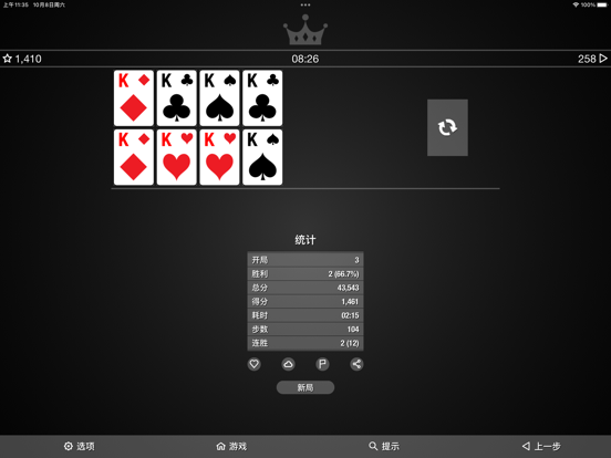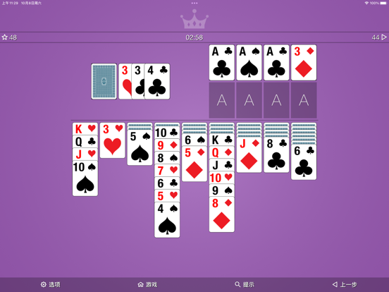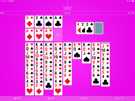 使用2副牌开始的纸牌游戏。高级效果和简洁操作,给您带来最好的纸牌游戏体验。 * 多个步数提示 * 无限次撤销操作 * 单击移牌 * 拖放移牌 * 显示得分,步数和时间 * 统计数据 * 自动完成已解出得游戏 * 翻一张或三张 * 游戏中心排名- 问题修复。