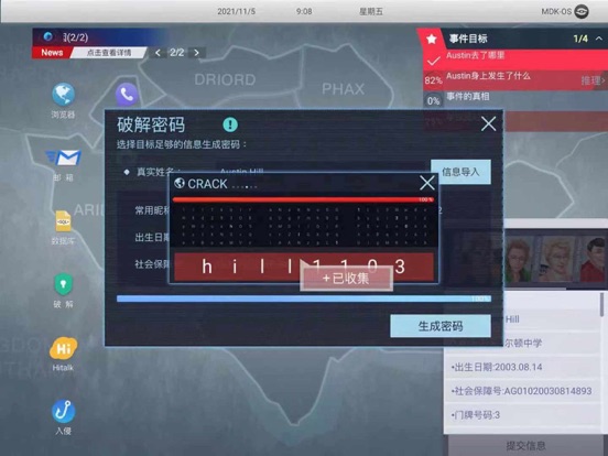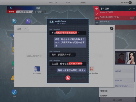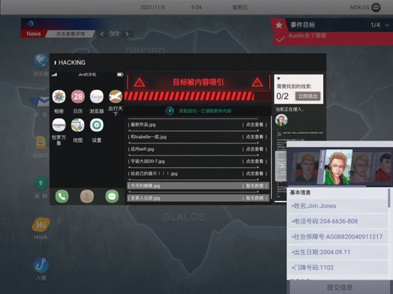 《无处遁形:全网公敌》是Steam平台广受好评的剧情向黑客解密游戏《全网公敌》手游版本。玩家通过网络搜索和社工手段获取目标人物信息,其隐藏最深的秘密都无处遁形。游戏中的每个故事看似各自独立,但随着剧情的发展却是草蛇灰线,伏脉千里。当所有事件串联起来,竟隐藏着惊天的秘密…… 希望玩家在游玩的同时,对网络本身也能产生反思,学会保护好个人隐私。 【游戏内容】 ◆第一章:程序员之死 某公司CEO跳楼自杀,自称被毒妻勒索千万;而妻子却在社交网络上发布被家暴的照片。谣言满天,谁在说谎? ◆第二章:看不见的眼睛 女大学生的不雅视频在网络疯传,这一刻,她已然社会性死亡。到底谁才是始作俑者?女性的安全又该由谁去保护? ◆第三章:消失的证据 品学兼优的学生会长忽然失踪。霸凌事件使案情越发扑朔迷离。谁是凶手,谁是受害者? ◆第四章:羞辱的代价 天降巨瓜,女歌星再次被爆黑料!恐吓信、炒作、前女团成员自杀事件……网络再掀舆论狂欢! ◆第五章:永生代码 当社会陷入癫狂,你是否也愿意加入永生代码,获得真正的爱与永生? ◆DLC:甜蜜之家 一个看似甜蜜而美满的家庭背后,每个人都有各自的秘密,隐藏在背后的真相到底是什么?! ◆DLC:HelloWorld 一场离奇的车祸,让泰坦公司的高级研究员Lucrezia Borgia博士当场死亡,同行的Benjamin Engle死里逃生,但他却没有意识到自己即将卷入一场巨大的阴谋之中…… 【游戏特点】 ◆代入感强:在虚构的世界里,玩家扮演一名黑客,接受一家公司委托,完成一个个不同的社工事件,体验真实的黑客操作。 ◆玩法多样:游戏内有多个系统,除了社工系统,还会有推理、追踪、解谜,破坏侵入等系统需要玩家们去一一攻破。 ◆剧情复杂:游戏中你将面临大量的选择和谜题,而不同的选择可能将导致不同的结局。 ◆人物众多:登场人物众多,每个人物都有自己的性格特点,而他们背后都有着不为人知的故事,需要作为黑客的你去一一发现事件的真相。 ◆全程配音:游戏中所有出现的角色都有真人配音,让整个游戏的体验和代入感更加强烈。 ◆原创音乐:多首原创主题曲以及各种音乐音效,搭配精彩剧情,享受震撼体验。 【核心功能】 ◆网络搜索:玩家通过浏览器搜索功能收集目标对象的基础信息。 ◆数据库:利用已知信息输入到数据库中,通过筛选后或许目标对象的其他信息。 ◆破解:通过获得的目标人物信息来生成密码,用于登陆各平台的账户(包括邮箱、社交平台、聊天软件等)。 ◆伪装:获取目标对象的需求、社交圈等,根据信息选择伪装,通过和目标对象接触获取更多信息。 ◆聊天沟通:添加目标对象为好友后,进行聊天沟通获取信息。 ◆图片分析:从图片中获取有价值的信息内容及相关线索。 当然,后期还会解锁更多的高阶社工方法!* 修改DLC"甜蜜之家"中Theresa在婚恋网站信息不一致的问题 * 修改DLC“Hello,World”套话Kevin语音不播放的问题 * 修改DLC“Hello,World”完成第一个推理之后有可能导致卡关的问题 * 修改个别型号iPad进入DLC“Hello,World”接电话之后直接闪退的问题