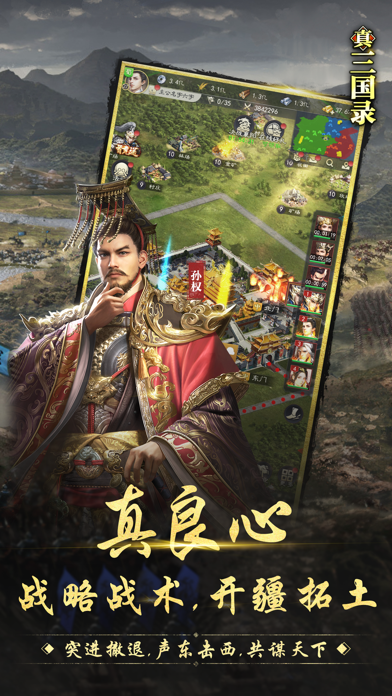 以东汉末年三国乱世为背景,玩家扮演主公的身份,举兵一统天下的战争策略手游。 你可选择魏蜀吴任何一方势力,建造封地、招兵买马、攻占城池、征战天下,来实现一统诸侯之雄图伟略。 历史名将等待着主公的统领,英雄可自由搭配技能、宝物、阵法、计策等策略性系统。 超大地图,拥有丰富的战争策略,六出祁山直逼长安,兵走华容誓取赤壁,讨伐董贼怒攻洛阳。 天气瞬息万变,路遇异族蛮夷,密道声东击西,护国军保驾护航,比武争霸田忌赛马,等你来指点江山。 三国乱世,尔虞我诈,合纵连横,成就霸业难免纷争,看谁能逐鹿中原。 【英雄培养】—— 上百个历史名将英雄池,各具独特天赋,形成多样性的搭配策略。 【自由交易】—— 大集市可自由交易各种珍贵物品,做商人 【神将来袭】—— 英雄可觉醒为神将,神将可以拍卖获得,也可活跃获得,也可付费获得,可进一步增加英雄的天生能力。 【装备系统】—— 多种套装选择,多种和文化结合的散件装备选择,可与英雄搭配出不同的能力,装备拥有天生的基础属性及效果。 【技能系统】—— 上百种技能可供选择,分为英雄技能、兵种技能、辅助技能、内政技能,极大的提高了策略组合的丰富性。 【阵法系统】—— 装备到部队上,可形成克制关系,同时有专属的阵法效果,可在战场中形成战争策略。 【计策系统】—— 结合三十六计,设计多种计策,可极大的提升基础属性,以及和文化层面高度结合的计策效果,进一步形成搭配策略。 【五行八卦】—— 结合周易文化,五行相生相克,上下卦组合形成宇宙观重卦,有64种组合效果,极大的增加了英雄能力的搭配策略。 【领土战争】—— 依据真实的三国历史地理,结合几百种著名城池,构成真实的中国地图,极大的突出了重要战略位置及指挥策略。 【战斗系统】—— 攻占城池可声东击西,可突进可撤退,加深了战斗纵深,回合制的战斗形式,极大的加强了搭配的策略性。优化一些体验,修复一些BUG