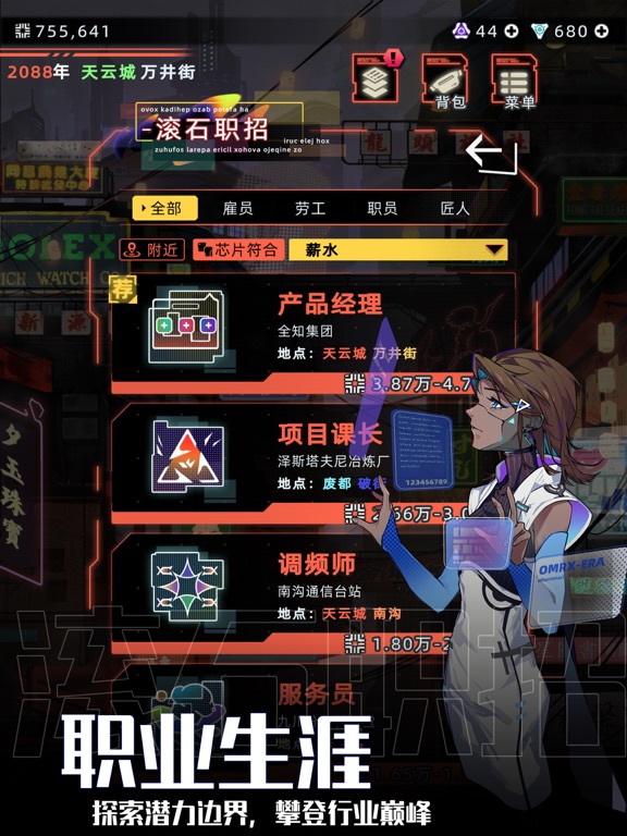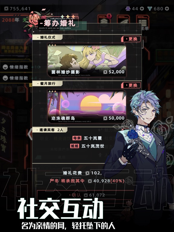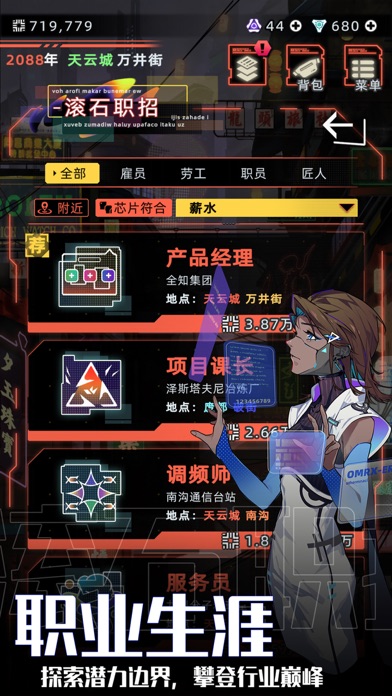 从古代,到当代,再到未来,这是我们人生三部曲中的最后一部,也是投入时间最长的一部。 前两部中,我们在第二人生的基础上,做了很多尝试,比如增加小游戏,增加可互动的宠物,加入创业等。有些受到了玩家的欢迎,有些则收到了爱的吐槽。 未来人生中,我们力争让每种职业具备未来感的同时还要有不同的体验,同时也尝试加入主线让玩的时候更有世界的观感 游戏的设定是近未来,不至于离我们现在的生活过于遥远 网络空间 网络空间的加入让你有机会把线上遇到的人约到线下,谁也不知道你约到的是人还是 多种玩法 组装机器人互殴,赛(飞)车,物理特性游戏 多城市多场所 不同城市有不同的场所,有些地方可以找到相应的工 形象与服装 加入了大量的形象与服装,还有与之匹配的整 互动性更高的亲人 可以给自己的长辈或晚辈介绍自己的优秀伙伴啦1. 优化了阿多尼斯日常事件触发逻辑,避免事件触发过少 2. 对大量系统进行检查,优化了游戏内存占用 3. 优化了游戏登入速度 4. 调整智能对话单次演化币消耗:150->100 5. 修复了私人博物馆在特定条件下出现无法进入的问题 6. 修复了委托进口货物时显示的货款费用加运费与实际扣费不一致的问题 7. 修复了特定条件下,特殊角色会主动搬家或换工作的问题 8. 修复了可以通过克隆体在监狱获取监狱外物品的问题 9. 修复了在账号仓库和商店页面里天赋最高品质的显示文本问题 10. 修复了财务主管的职能异常的问题 11. 修复了在上城区修船和在鱼缸卖鱼时货币显示的问题 12. 修复了羽虎使用注射式生命源没有生效的问题 13. 修复了桑尼·威廉姆斯告白事件没有正常触发的问题 14. 修复了玩家有男朋友的情况下桑尼没有离开的问题 15. 修复了数字化身受伤会导致玩家自身装备耐久减少的问题 16. 优化牧组织袭击难度 17. 修复了部分文本问题