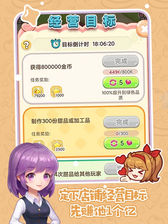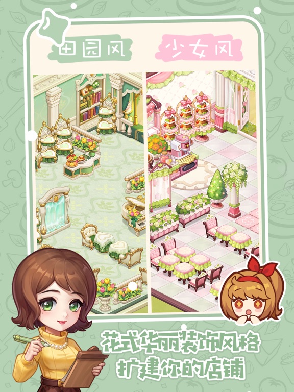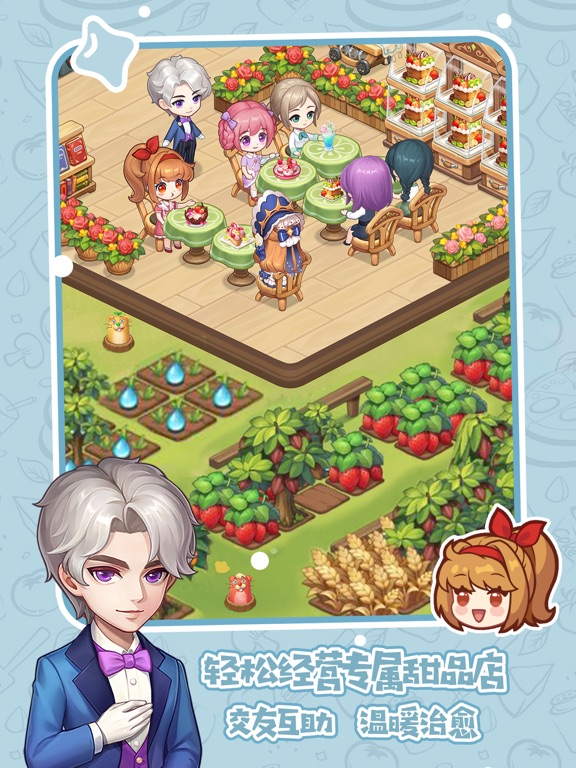 《创意甜品屋》是一款模拟经营类手机游戏。在游戏中,玩家有着属于自己的甜品屋和土地,可以通过种植、收获各种植物,来制作精美的甜品,然后出售给顾客,获得的金币可以购买装饰,自由布置自己的甜品屋,玩家根据自己的喜好进行搭配,DIY店铺中各种装饰,以及可以更换主角衣服配合店铺的风格。可爱的角色形象,精致的甜品,个性化的场景,易上手的操作性,无不带来幸福快乐的游戏感受。新增节日活动及系统玩法