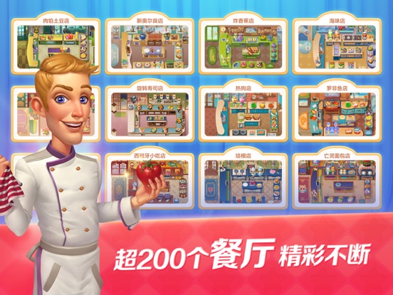 欢迎来到开心大厨!跟随幽默的主角们,解开他们神秘又精彩的故事! 下面是《开心大厨》成功的配方: * 数百个令人胃口大开的美食餐厅让你直流口水! * 变身为优秀的大厨,娴熟的制作料理并赚取更多的金币! * 华美场景?超过500个装饰建筑,逐一解锁,让你自由搭配,随心定制属于自己的豪华宅邸和花园小岛! * 神秘故事?当失恋暴躁的甜品师,和离婚破产的名媛,遇到外冷内热的主厨,和绅士黄金单身的餐厅老板,他们所在的小镇社区里,每天都在发生着让人忍俊不禁的故事。 * 每月1号推出全新的主题活动,新鲜十足!每周都有新的章节故事,追剧吧,真的会欲罢不能! 与朋友一起畅玩,在大厨俱乐部里认识新朋友,看看谁的花园小岛更漂亮?和朋友们一起努力,赢取丰厚的奖励,这将是一场美妙的旅程,准备好了吗?1、“好运筒”活动,“积分狂欢”活动,隆重登场,精彩活动连连不断! 2、新增加2个大地图。 3、新的美食日记活动,即将开启!