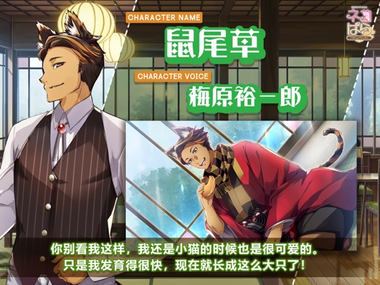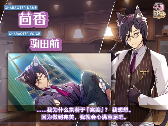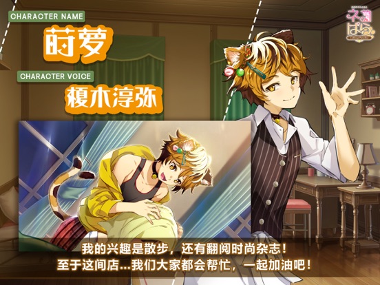 猫郎让你心跳不已的恋爱冒险游戏 【剧情介绍】 爷爷过世后,你继承了他的咖啡店和房子。你很喜欢爷爷,并想把他的咖啡店经营下去,但是你不知道具体该怎么做。就在你无计可施的时候,一所学校找到你,问你要不要接收几名具备相关知识的住店实习生。别无他法的你痛快地答应了,没想到出现在你面前的不是人类实习生,而是四只肉食系的人形猫?!虽然是听说最近人形猫店员也很常见,事情还是出乎你的意料。你和四位猫郎一起经营咖啡店的故事即将开演! 【角色介绍】 月桂(CV.石川界人) 品种:泰国曼尼猫 身高:182cm 我行我素、总是在犯困的王子系猫郎 月桂平时总是一副懒洋洋的样子,找到机会就睡觉。但他在工作时态度认真、待人和气,再加上英俊的外貌,使他非常受女性顾客欢迎。他是那种只要拿出真本领就无所不能的天才。 茴香(CV.驹田航) 品种:美国缅甸猫 身高:178cm 追求完美的助手猫郎 为了促进咖啡店的发展和女主角的成长,茴香每天都在孜孜不倦地做着指导。他非常勤奋,做事时刻追求完美,对自己的要求也非常严格。他平时会缩短睡眠时间用来学习,所以没人看到过他睡觉的样子。 鼠尾草(CV.梅原裕一郎) 品种:孟加拉猫 身高:190cm 心地善良、身体强壮的大哥猫郎 鼠尾草不善言辞、少言寡语,但他会像一个大哥一样默默守护着大家。他心胸宽广,为人不拘小节。需要他出力的时候他从不推辞,非常有男子气概。 莳萝(CV. 榎木淳弥) 品种:三色猫 身高:174cm 很会撒娇、爱好时尚的猫郎 莳萝很亲近人,特别擅长和人交朋友。他爱好时尚穿搭,最大的烦恼是总是不小心就买了太多的衣服。他会帮女主角挑选衣服,还会在化妆方面提建议。 【游戏看点】 四位猫郎各有单独路线 全篇日文语音(主人公除外) 支持日文、英文、中文 备有CG鉴赏模式 【制作人员】 角色设计/原画:G Yusuke 剧本:结城由乃 音乐:POPHOLIC 视频制作:Nirai-Kanai 制作人:SayoriVersion 1.1.0 | 俄语支持 - 添加了俄语翻译 - 修复了音量调整没有反映到部分音效上的问题 - 中文翻译修正