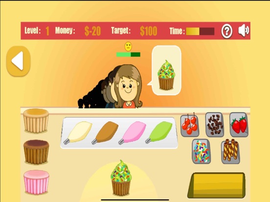 暑假来了,小花的妈妈让小花到家里开的纸杯蛋糕冰淇淋小店来帮忙,每天来买纸杯蛋糕的人很多,每个人的耐心程度不一样,有的人等的时间长了就不买走了,所以小花要熟练选好不同颜色的蛋糕和冰淇淋,还要选择草莓,樱桃和巧克力。 你来帮小花一起卖纸杯蛋糕冰淇淋吧。 小花经营一家纸杯蛋糕小店,很多小朋友喜欢在这里买蛋糕,他们的要求都不一样,而且耐心有限哦! 游戏加载完后点击两次START即可开始游戏。 提示:做完蛋糕后点击客人。 以最快的速度,做出客户喜欢的蛋糕吧!Minor bugs fixed! Improve UI and teaching guides! More easy to learn!