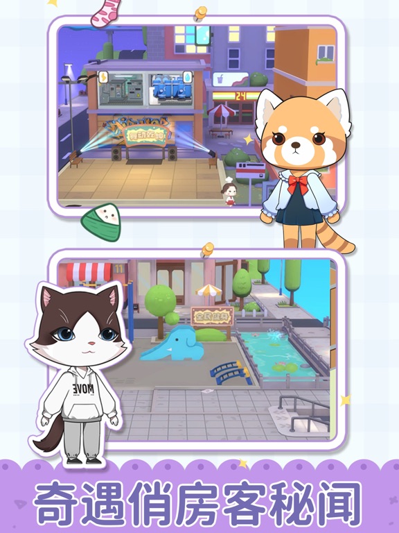 欢迎来到《猫婆婆的幸福公寓》!这是一款画风简洁可爱、剧情轻松治愈的模拟经营游戏。 公寓保安小猫叮铛在这里给大家带来一则新消息!坐落在星海城的幸福公寓正在招募管理员,要来体验一下经营公寓的乐趣吗?! 【试问前方何处?小猫叮铛引路!】 这里的主人是位远近闻名的爱猫慈善家,人们都叫她猫婆婆。近期她计划出门远行,需要一位可靠热心的代理人来帮忙经营公寓。 这里有各种类型的公寓房间,还有餐厅、快递、超市等为居民提供服务的商铺。 作为代理房东,你的主要工作就是收租!收租!收租! 公寓经营零经验也不要紧,叮铛会给你指引~ 以后公寓商超的规划扩建、家具房间的升级布置、还有租客商户的沟通合作就都交给你啦! 【人物形形色色,故事别出心裁】 猫婆婆的租客列表就像一盒奇妙的糖果,它五颜六色,它缤纷多彩。 随便翻开一页,你来猜猜下一个租客是来自山东还是广东,是爱吃甜豆腐脑还是咸豆腐脑?他是白天上班的公司职员,还是夜晚出没的DJ,又或者会不会是24小时不打烊的神奇便利店店主?他们身上的故事又是怎样的呢? 哦对,还有一些可爱的动物朋友,尖尖耳朵,毛毛尾巴,冰凉凉的小爪子...来猫婆婆的幸福公寓,随时偶遇神奇生物! 【想要一点新鲜,就来叮当的冒险】 每天生成随机地图,叮铛带你去冒险!来玩抓娃娃机、土坑挖宝、石头剪刀布!跟狡猾的狸猫抢金币!之后还可以去猫婆婆的厨房解锁食材,制作可口的菜肴与甜品,跟可爱的租客们一起分享美食哦!1、新增了大联欢角色,包含各式各样风格不同的且包含地域特色的人物! 2、新增了甜品外墙、甜品场景、甜品屋顶。 3、修复了一些BUG。