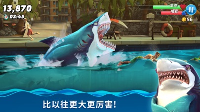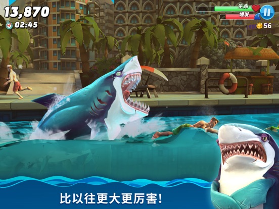 想活命就得吃!席卷海洋中各式各样的生物、从可以吞下的小鱼和小鸟,到美味的鲸鱼,甚至是毫无防备的人类! 【深渊魔鲨,伤害爆炸】 -来自深海的魔化鲨鱼自带恐怖的超能力,竟能轻易驾驭各种元素? -深渊鲨加入PVP活动,跟鲨鱼爱好者一起竞争,赢得巨额奖励吧! 【超多福利,诚意满满】 -全新喷溅通行证上线,每天参与各种趣味活动,白拿无数福利! -升级通行证,获取珍稀套装,限量装备,高额返利和独家奖励。 【天外飞鲨,奇异宠物】 -外表凶恶的全新变异级鲨鱼加入战场,听说TA是刷分利器哦~ -奇形怪状的呆萌宠物悉数登场,特殊能力帮助鲨鱼大闹整片海洋! 【全新鲨鱼,强势入侵】 -赛博朋克风已然吹到了海洋之中,机甲鲨吉拉等你来操控! -憨憨蠢蠢的“玩具鲨”外形和能力都很弱,但却又无限潜能,快帮TA变强吧! 特性: + 充满地域特色的开放式世界 + 超过百种各式各样的生物 + 彰显个性的自定义造型 + 丰富的游戏模式和任务挑战 + 超酷的鲨鱼道具和狩猎宠物1.新增鲨鱼“送葬鲨” 2.装备价格和属性调整