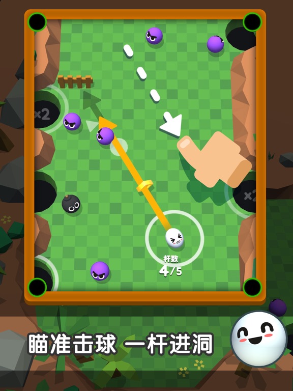 桌球的创意玩法!来一局荒野桌球赛! 尽情挥杆,冒险不打烊! 《一杆进洞》是一款以桌球玩法为内核,融合了冒险闯关的休闲小游戏。操作简单易上手,熟悉的桌球规则,丰富的地图关卡,玩法大不同,乐趣加倍! 【击球入袋 冒险未停】 内嵌的桌球玩法规则,瞄准方向与击杆力度,都真实还原了桌球体验!通过不断击球入洞,使桌球持续向前滚动,探寻关卡之谜! 【百搭帽子 花样玩法】 游戏中可以收集多款帽子,不仅可以在商店里兑取金币,也可以装扮自己的桌球,获取强力技能噢!同时,特殊帽子也有几率解锁特殊玩法,来一场神奇的桌球冒险吧! 【魔幻地图 丰富关卡】 初始冒险之路将在荒野峡谷或是阴森地牢中展开,随着探险深入,将会面临越来越多的障碍与极具迷惑的陷阱。面临停滞不前吗,小心! 【萌系桌球 随时变装】 冒险途中,收集帽子的同时也将获得新的桌球伙伴,可萌可炫,风格多样,众多伙伴,总有一款值得你爱! 想要获取Kiseki Games最新的更新消息,请关注:http://www.kisekigames.com 感谢您的游玩!修复游戏BUG,提升游戏性能~
