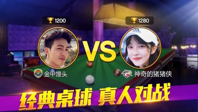 《欢乐桌球》是一款超好玩的休闲竞技台球体育游戏,不仅百分百还原了经典8球玩法,更有直播、俱乐部联赛、实时聊天等强大的社交功能,台球爱好者绝不可错过的一款台球+社交游戏!赶快来磨炼你的技巧,尽情展示你的魅力,让你在游戏中体验不同于其他8球游戏的乐趣和荣耀! 想成为优秀的8球王者吗?免费下载游戏吧! 游戏特色: - 经典8球,竞技对战 — PVP真人实时匹配、8人联赛随机分组,还原现实桌球玩法,简单流畅的操作,酷炫的动画特效给你绝佳的游戏体验。 - 强大社交 — 即时弹幕互动,更有完善的实时聊天和好友系统,让你认识更多的台球大师,随时随地和朋友一决高下。 - 俱乐部联赛,强者之战 — 加入/创建专属俱乐部,与你的队友协作,占领场地! - 百变球桌,精美球杆 — 超逼真的台球物理模型,不同材质的3D球桌以及个性化球杆,给你身临其境的击球体验。 - AI陪练,残局挑战 — 趣味单人模式和无限练习赛,磨炼你的技巧,助你百战巅峰,称霸榜单! - 大师竞技,挑战榜单 — 国家、段位、俱乐部、好友各类大师级专业排行榜等你来挑战,更有直播魅力排行榜等你来大放光彩! - 增加大奖赛,海量金币等你来赢取! - 幸运猜猜猜,小游戏赢取大奖励! * 欢乐桌球,经典玩法 * 随时随地互动交友 * 8人联赛,球友集结,占领阵地 * 轻松1v1,赢宝箱,海量金币、球杆等你拿 * 逼真物理还原,绝佳击球体验 赶快免费下载欢乐桌球,成为顶级8球王者! 欢迎加入欢乐桌球游戏官方群! QQ群号:768295903修复了微信登录的bug