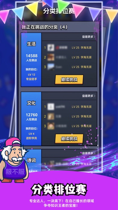 【主题粉丝大比拼】 ——经典电视剧、电影、明星、动漫、游戏、小说、综艺主题等你来挑战,答题闯关,赢取专属勋章! 【知识晋级赛】 ——64人同场竞技,知识对决,击败对手,角逐冠军! 【分类排位赛】 ——专业达人,一决高下!在自己擅长的领域,争夺知识王者的宝座! 【好友PK】 ——友谊小舞台,知识大比拼!邀请好友一起答题,看看谁是知识之王? 优化用户的体验。