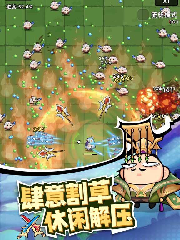 这是一款结合动作与生存元素,用三国武将进行无双割草的超解压Roguelike游戏!可以在游戏中,自由搭配不同的远程近战武器,配合随机获取、无限叠加的技能,在众多的关卡模式下,单手操作,独霸天下,一个人消灭千军万马!更新内容 -修复已知问题 -优化部分游戏进程 -调整部分道具数值