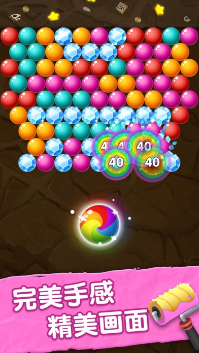 【经典1000关】 经典的泡泡消除玩法,1000关你能打到第几关? 【爽快手感】 三个同色泡泡相连就能消除,左右滑动就能发射,墙壁还支持反弹哦~ 【建造小家】 通关获得的奖励还能兑换家中装饰,建造你的梦想小家吧~针对不同机型优化屏幕显示