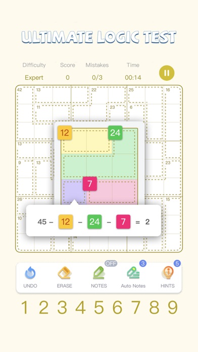 欢迎来到杀手数独大师,这是一款挑战智力和数学技巧的数独谜题解谜游戏。不同于传统数独谜题,这里的规则更加精妙,更加刺激。您需要在九宫格中填入数字,确保每个笼内的数字总和与左上角的数字相等。同时,每个3x3宫、每行和每列的数字总和必须是神奇的数字45。您能战胜这个数学之谜吗? 【智力锻炼与娱乐兼得】 杀手数独大师不仅是一款休闲益智解谜类的娱乐游戏,更是锻炼您大脑的绝佳方式。通过解决不同难度级别的数字谜题,您将提高逻辑思维、数学技巧和解决问题的能力。这是一个智力和娱乐的完美结合,适合各个年龄段的玩家! 【多种难度,百玩不厌】 数独谜题游戏中有多个难度级别,从初级到专家,满足不同水平的挑战需求。无论您是数独新手还是数学高手,都能在这里找到适合自己的数独谜题,享受智力挑战的盛宴。 【成为数独大师】 与全球玩家一较高下,登上排行榜的巅峰!在杀手数独大师中,您将有机会展示自己的数学解谜技巧,争夺数独大师的荣誉称号。准备好迎接挑战了吗? 【杀手数独谜题游戏特点】 √ 自动高亮显示当前数独九宫格中所有的相同数字,解开数学之谜 √ 快速添加笔记,进行数字挑战,完成逻辑难题,成为数独节奏大师 √ 手动添加笔记,给需要特别注明的数字或格子添加一个标记,完成九宫格拼图 √ 一键补齐所有空余数字,开启你数字王国的英雄传说 √ 撤销上一步操作,无限制的撤销/重做功能,赢取数独谜题之战 √ 擦除所选拉丁方块方格中的所有阿拉伯数字,最强大脑竞赛游戏 √ 无限次重玩,体验数字拼图传奇,解决数独谜题,来一场无极限的脑筋急转弯 √ 休闲推理类游戏,随时可以与朋友对打来一场数独谜题比赛,体验数独开花的快感! 【如何玩杀手数独】 √ 与经典数独谜题一样,将数字1-9填入所有的行、列和3x3宫中。 √ 确保每个笼(以虚线显示的单元格组)中的数字之和等于该笼左上角的数字。 √ 这款数字逻辑谜题的特殊规则是每个3x3宫、每行或每列的所有数字之和都等于45。 √ 笼、每行、每列或每个3x3区域里的数字不能重复。 在杀手数独大师中,数学的乐趣和解谜挑战将让您欲罢不能。下载杀手数独游戏,开始您的数独之旅,成为真正的数独大师!快来挑战自己的数学极限,玩转数独谜题的乐趣! 喜欢数学和数字谜题的朋友们,赶紧加入我们的数独大师团队,解锁数字谜题的乐趣吧!1. 首页添加鲜花展示与关闭功能。 2. 优化体验:选中数字时,已填入的笔记中同数字也会同步高亮显示。 3. 修复同笼内数字重复bug。 希望您喜欢玩《杀手数独大师》。我们会仔细阅读您的所有评论,以便为您提供更好的数独游戏。请给我们留下反馈意见,让我们知道您为什么喜欢这款益智游戏,以及您希望我们改进哪些地方。通过《杀手数独大师》放松或活跃您的思维!
