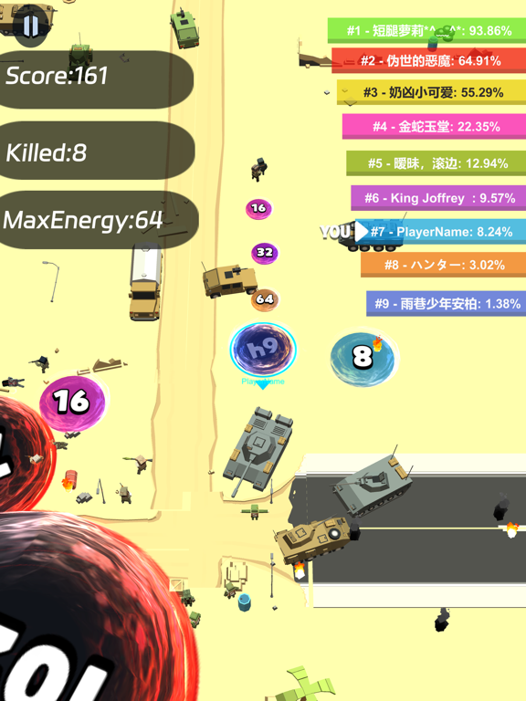 黑洞大作战 - 黑洞王者 一款以吞噬其他星球和太空物体为主要玩法的游戏。 玩家可以扮演一个太空黑洞,在太空中探索不同的星球上的发射基地和行星,遇到各种不同的挑战和障碍, 同时挑战吃掉其他玩家和AI扮演的敌对黑洞。 在这个空旷的太空基地中,多玩家战斗,吃掉你的对手,你将变成一个黑洞吞噬一切,不断吞噬壮大变成全宇宙最大的黑洞。 在地球发射基地中各种3D对象、火星太空基地中各种装备和太空飞船,让玩家可以更好地探索和征服太空。 玩法简单易上手,同时又有趣味性和挑战性,让玩家可以在游戏中享受到太空探险的乐趣。 快来加入我们,一起探索无尽的太空世界吧!你将成为黑洞中的王者! 合成第一个2048能级的巨型黑洞! 如果您有任何问题,可以通过 官方邮件(popeach@163.com)反馈评论入口给我们发送问题和建议,我们乐意为您提供帮助, 如果您喜欢我们的游戏,也请将”黑洞大作战 Swallow Royale”告诉身边的朋友,您的支持是我们持续更新的最大动力!1.竞技模式 -关卡卡时间调整为150s 2.Rush模式部分关卡3,35,55 设计 布局微调 3.新增经典城市吞噬模式地图 4.其他音效等不定时失效问题修复