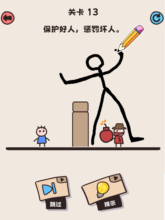 想测试一下你的脑洞有多大吗?快来尝试画线保护小人免受炸弹、剑、子弹、箭……和许多其他威胁生命的攻击!你可以画特技、超人、狼牙棒和任何保护措施来帮助小人生存。你就是他的救世主! 【游戏玩法】 1. 通过画线来保护小人不受伤害 2. 你只能用一笔画出道具,手指松开你的道具就会马上生效 3. 每一关都会有多种破解方法 【游戏特色】 1. 上百种危机等待你来挑战 2. 一个危机,多种破解,找到最搞笑且出乎意料的方法,你就是脑洞最大的仔! 3. 益智和绘画的完美结合1.新增20+款搞怪皮肤 2.新增关卡