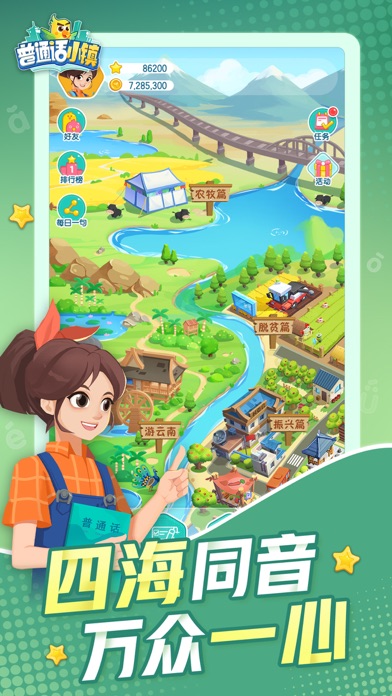 《普通话小镇》是一款专为普通话基础薄弱人群定制,由教育部语言文字应用研究所指导、语文出版社和腾讯互娱社会价值探索中心联合推出的普通话学习公益游戏。 2023年9月,在第26届全国推广普通话宣传周期间,《普通话小镇》推出了全新青壮年农牧民版本,基于其生产生活场景,新增1500多条新词句语料,通过场景化的互动形式和丰富的小游戏答题玩法,提供数字化普通话学习方式,充分发挥数字赋能国家通用语言文字推广普及的作用。新增扫码登录功能。