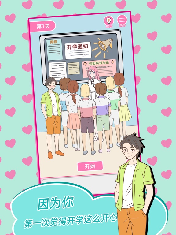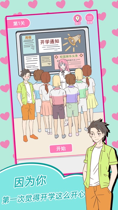 满满的套路!要想获得美人归,就需要出神入化的撩妹技巧,喜欢的人就不能让她受到伤害,还要懂得哄人开心,雨中送伞只是小意思,吃饭看电影是常规操作,最重要要懂得浪漫,关键时刻还要耍点帅帮助妹子度过难关,情书礼物样样不能少,关键节日怎么能没有她陪伴,这一切的一切,都是因为在人群中第一次相遇就已命中注定。 游戏特色 -小玩法多的满满撩妹套路 -全新画风给你朦胧暧昧感 -回想初恋般的青春荷尔蒙修复了已知bug