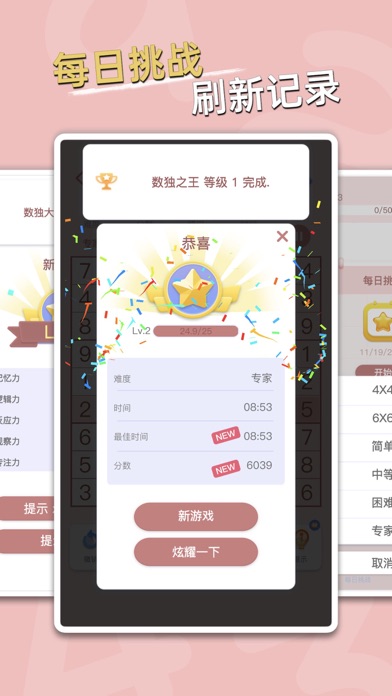 经典数独益智游戏是一款令人上瘾的基于逻辑的数字谜题益智游戏。数独大师旨在锻炼您的大脑和逻辑思维,适合初学者和高级玩家的脑数独。解开每日杀手数独谜题,锻炼您的大脑、逻辑思维和记忆力,是一个好时光杀手!几千个数字谜题游戏,等您来玩。立即安装数独免费应用,体验经典的逻辑游戏! 经典数独是一种基于逻辑的数字益智游戏,目标是将1到9数字放置到每个网格单元格中,以便每个数字在每行、每列和每个3x3的九宫格中仅出现一次。使用我们的数独益智应用程序,您不仅可以随时随地享受数独游戏,还可以从中学习数独技巧。无论您是想放松身心还是保持您的思维活跃,都可以玩免费数独谜题游戏,愉快度过美好时光!无论走到哪里,都可以带上您最喜欢的数字游戏,它可以离线游玩。在移动设备上玩这款免费的网络数独游戏,与使用纸笔玩数独一样有趣。 数独大师拥有完美平衡的难度等级,这款免费脑数独谜题游戏不仅适合数独新手,也适合进阶数独玩家!玩简单和中等难度的数字谜题游戏,锻炼您的脑力。选择困难等级,提高您的数独解谜游戏水平。尝试专家级别难度,体验超高难度挑战,让您的大脑得到真正的锻炼,成为数独杀手! 【数独大师主要特点】 1. 数独谜题有4个难度级别:简单数独、中等数独、困难数独和专家数独。适合数独新手和进阶玩家,成为数独杀手。 2. 每日挑战:完成每日挑战可获得独特奖杯。 3. 铅笔模式:根据需要打开/关闭铅笔模式,或使用自动铅笔一键填入所有笔记,填好一个单元格后笔记都会自动更新。 4. 6种主题色:简洁清新的视觉效果,多种主题色随心换。 5. 4宫、6宫、9宫、16宫等多种数独变体,儿童数独,成人数独,老少咸宜。 6. 随时暂停/继续游戏,未完成的数独谜题自动保存。 7. 数独在线和数独离线 【在Brain Sudoku Master中,您还可以设置】 1. 高亮重复数字:避免一行、一列或一个宫中填入重复数字。 2. 智能提示:在您玩数独免费谜题被卡住时,引导您克服难点。 3. 无限制撤消:在解答数独谜题游戏时不小心将相同的数字对填到同一行,只需赶紧撤消就行! 4. 一旦放置数字,自动从所有列,行和块中删除注释。 5. 自动完成:只剩下几个唯一数字时一键补齐所有空余数字。 6. 无限次重玩 【数独解谜益智游戏还有更多的功能】 1. 统计信息:追踪数独谜题的每个难度等级的进度,分析您的最佳时间和其他成就。 2. 成就勋章:完成谜题,解锁成就和奖励。 3. 脑力值:多维度统计与分析在解决谜题时的脑力表现。 当您第一次打开我们的数独谜题益智应用程序时,您会看到一个指导您如何玩数独游戏的指南;当您第100次打开数字益智谜题游戏应用程序时,您会看到自己是一位数独大师和一个优秀的数独解决者。用每日数独开启您的美好一天!1或2个经典数独谜题可以帮助您快速醒来,让大脑开始工作,帮助您开启高效的一天。下载这款经典的数字逻辑游戏,离线畅玩免费数独谜题。我们的数独应用程序具有简洁清新的界面和平衡的难度级别,适合数独初学者和高级玩家。它不仅是消磨时间的好帮手,还可以帮助您思考,使您更有逻辑性并拥有良好的记忆力。 随时随地玩这款经典数独游戏,挑战您的脑力! 如果您热爱逻辑游戏,喜欢解答数独谜题,欢迎来到我们的数独王国!在这里,您可以在空闲时间玩这款经典的数字谜题,保持敏捷思维。定期练习可帮助您成为一名真正的数独大师,能在短时间内快速解开即使是最复杂的谜题。 如果您对我们的数独益智游戏应用程序有任何想法,或者您对数独有任何疑问并想与我们讨论,请发送电子邮件至lichismile2020@gmail.com我们随时为您服务。 Facebook: www.facebook.com/mastersudoku9 Instagram: www.instagram.com/mastersudoku9 Website: sudoku.lichismile.com Email: lichismile2020@gmail.com- 修复bug,优化性能。 我们会不断更新数独大师(Master Sudoku Puzzle)游戏,让你在轻松减压的同时回归最原始的经典数字解谜游戏的乐趣。欢迎来到数独世界!欢迎来到数独乐园!让我们开始大脑思維训练之旅吧!