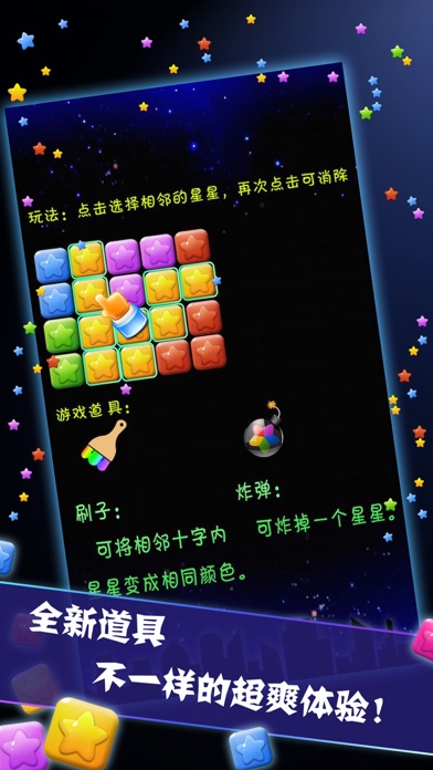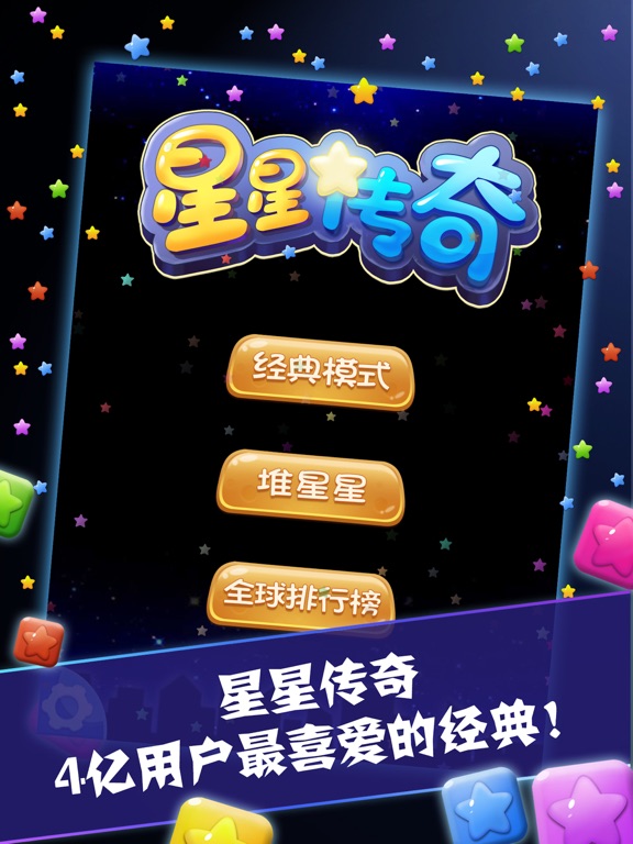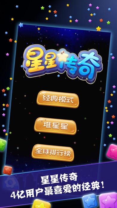 星星传奇最经典原始版本,已超过亿次下载! 你绝对要下的好玩小游戏,陪你度过休闲的时光! 无内购,各种道具全部免费!无游戏限制,想玩多久就玩多久! 挥挥手指,将星星带回家吧! *用户评价* “已经连续玩一年了,非常好玩” --饕餮1977 “好好玩,我每天必备游戏呦,宝宝也很喜欢 ” -- 我是宇宙大超人 “感谢给我消磨时间的乐趣 ” -- 鹿死谁手嘿嘿 “没有很刺激,但每次换手机都只下载这一个游戏“ -- 小腾王 “不错的游戏,妈妈很喜欢玩,消磨时间的利器” --Adan8 *游戏简介* 经典模式:点击相邻相同颜色的星星就可以消除得分,超简单娱乐休闲极品! 堆星星模式:将方块拖入格子中,堆满行或列就可以消除,易于上手难于精通! *游戏特色* --道具系统: 爽快的道具效果,让你玩得尽兴! --存档系统: 随时随地,想玩就玩,你的游戏进度随时被保存! --打宝系统: 消除后随机概率获得游戏内道具,叨丝也能逆袭! --全世界排行系统: 本游戏是中英双语版本,所以你要面对全世界玩家的挑战! 更多游戏特色,等你进入游戏去发现!-适配iphone 14 -支持Ios 16 -修复部分问题 -优化部分问题