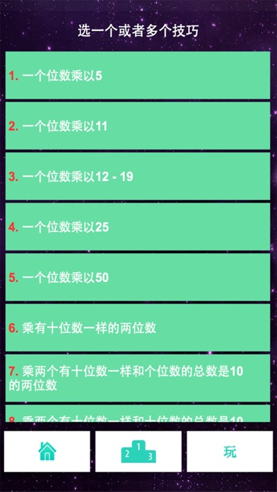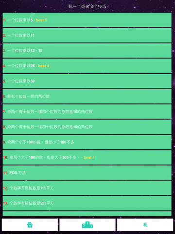 如果你的數學很差,那麼你一定要學這25個計算技巧,學會之後再也不用擔心算錯了! 數學是讓很多人頭疼的難題,排列組合的數字竟然能夠演變處那麼多結果,真是太神奇了。雖然我們都會被九九乘法表,但是對更加複雜的數學問題卻無能為力,看看下面的小技巧,一定能夠讓你愛上數學。 数学技巧: 1) 乘法 2) 任意数乘以5 3) 任意2位数乘11 4) 任意2位数乘12 - 19 5) 任意数乘以25 6) 任意数乘以50 7) 两个十位数相同的两位数相乘 8) 任意1结尾的数的平方 9) 任意2结尾的数的平方 10) 任意3结尾的数的平方 11) 任意4结尾的数的平方 12) 任意5结尾的数的平方 13) 任意6结尾的数的平方 14) 任意7结尾的数的平方 15) 任意8结尾的数的平方 16) 任意9结尾的数的平方 17) ................................Apple 已更新此 App 以显示 Apple Watch App 图标。 Add flowchart