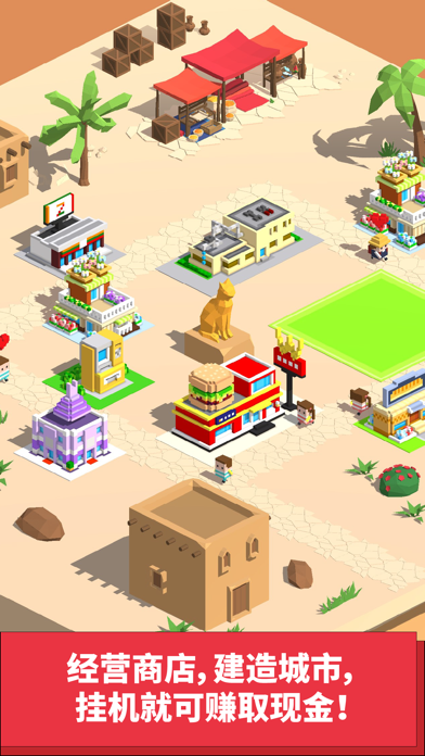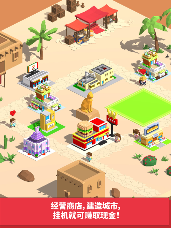 挂机就可以挣钱! 轻松休闲的像素商业街来啦!这里有呆萌可爱的顾客,有各式各样的漂亮商店在等着你! 使用初始资金购买土地,兴建店铺,招揽顾客们前来购物消费,每个顾客都有自己的特点,每个商店也都有自己特殊的功能,搭配不同种类的商铺来使利润最大化,让你的购物街变得热闹起来吧! 目标是成为商业大亨! 特色: -->数十种特色顾客 -->数十种特色商店等级解锁 -->多达10个城市等你来征服 小技巧: 1.不同的顾客有不同的购物倾向,需要细心去发现 2.现金花光的顾客将无法继续消费,建造ATM和银行可以让他们取出存款继续购物,或者建造支持信用卡消费的店铺,这样顾客就可以使用信用卡啦 3.顾客的饥饿度和体力耗光时就会提前离开,所以一定要有餐馆和休息场所给他们补充饥饿度和体力! 4.顾客的时间都是有限的,好的建筑搭配和更高等级的技能等级可以让他们在购物街停留更长时间 5.商店都是可以升级的,升级项目会随机出现,顶级商店会有最多3个升级项目,所以当你金钱足够多时,可以拆掉升级项少的店铺来重新建造碰碰运气 6.在线礼包会越领越多!千万不要错过!城市场景大幅度更新。 建造商店可以解锁隐藏装饰! 所有内容免费开放!