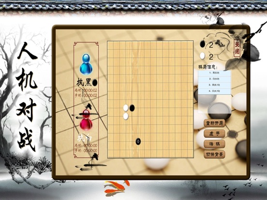 说明: 围棋是一种策略性两人棋类游戏,属琴棋书画四艺之一。围棋使用方形格状棋盘及黑白二色圆形棋子 进行对弈,棋盘上有纵横各19条直线将棋盘分成361个交叉点,棋子走在交叉点上,双方交替行棋,落子 后不能移动,以围地多者为胜。中国古代围棋是黑白双方在对角星位处各摆放两子(对角星布局),由 白棋先行。现代围棋由日本发展而来,取消了座子规则,黑先白后,使围棋的变化更加复杂多变。围棋 也被认为是世界上最复杂的棋盘游戏。 环宇围棋界面精简,运行流程,是学习围棋、与朋友对弈的不二之选。 基本下法: 对局双方各执一色棋子,黑先白后,交替下子,每次只能下一子。 棋子下在棋盘上的交叉点上。 棋子落子后,不得向其他位置移动。 轮流下子是双方的权利,但允许任何一方放弃下子权。 特点: 1、单人游戏模式,挑战人工智能; 2、支持双人模式,可与朋友同机对弈; 3、实时记录每一步信息。1.修复了一些BUG