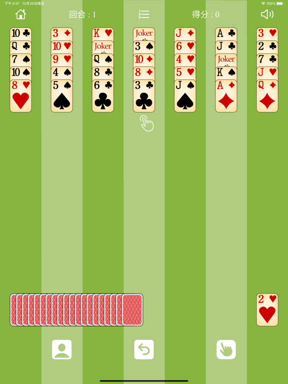 超级高尔夫接龙是一款超级锻炼头脑的休闲益智小游戏。 您需要利用下面的牌把上面打开的牌全部消除来过关。 首先点击下面打开第一张牌来开始游戏。 在上面查找比它大1或者小1的牌来消除,不限花色。 K可以消除A,A可以消除K。 大王可以消除任意牌。 当没牌可消除时,点击下面的牌。 当下面所有的牌都使用过,上面的牌仍然没有消除完,则闯关失败。 撤销和切换大王道具助您顺利过关,一关只能用一次,谨慎使用哟! 有趣的成就等您来挑战哟!支持iOS 17