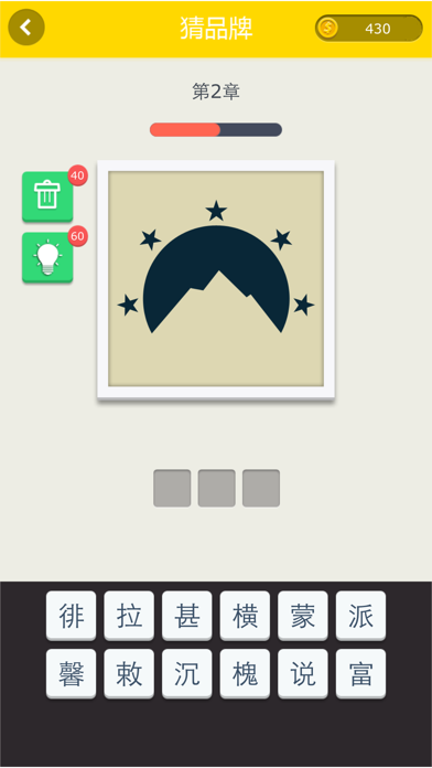 看图片猜品牌,300+关卡等你来挑战! 三星,宜家,麦当劳,香奈儿,凯迪拉克无一漏网,从食品到快消,从汽车到电子类产品,你所熟悉的一切,这里应有尽有。快来挑战自己,来一场激烈的头脑风暴吧! 游戏简单易上手,图片妙趣横生,更能与好友一起疯狂猜图,你还在等什么呢?支持iOS 16