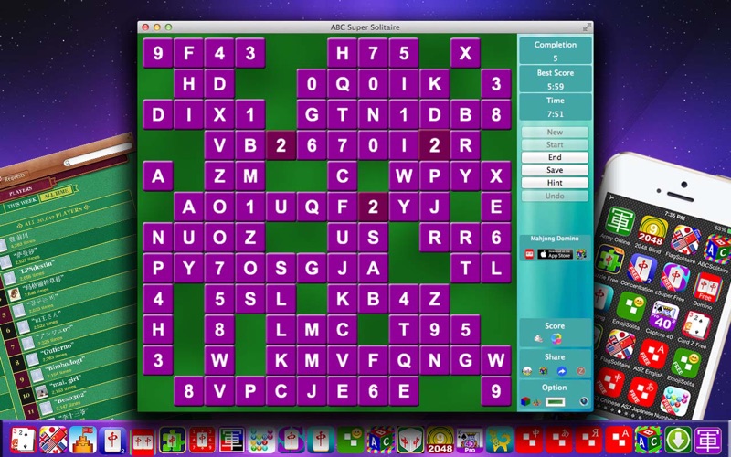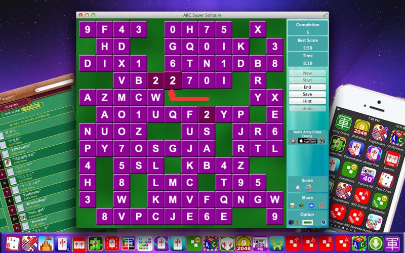 ABC 超级推推通通,又一个伟大的智力游戏! 让你挑战自我,让你上瘾,让你学会脑筋急转弯,让你更聪明! Youtube Demo https://www.youtube.com/watch?v=kfh8HshY-oQ 1)游戏目的 在最短的时间内,3个3个消除所有的牌。 2)如何消除牌 * 只移动一个牌。 * 最多移动四个方向。 * 每个方向最多移动一次。 * 移动至任何两个成对的牌处于同一行上而其间没有其他牌。 3)软件特点 * 具有提示和撤销的功能,各有两次机会。 * 当没有更多的对时,显示结束通知 * 当结束游戏时,提示可删除对 * 当选择提示时,显示移动方法