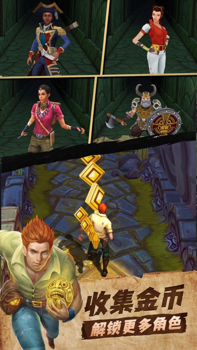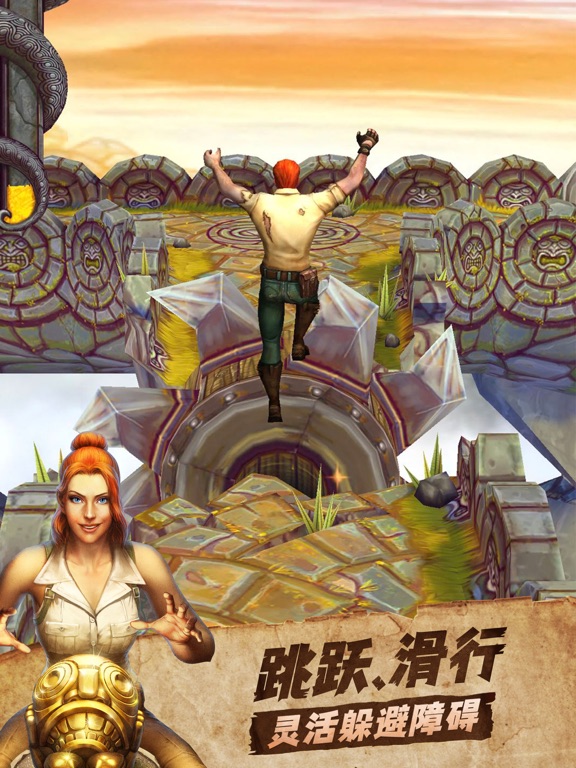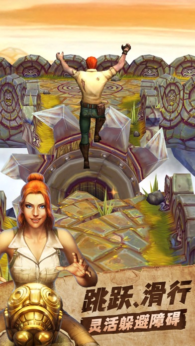 《神庙逃亡》是一款竖版生存跑酷游戏,你将扮演一名冒险家来到古老的神庙中寻宝,却碰上怪兽的追赶。需要操作游戏人物不断向前飞奔,灵活且快速的做出转弯、跳跃和卧倒等操作,在过程中你需要避开坍塌路段,越过重重障碍,在逃亡时,你可以左右晃动设备收集金币。游戏操作简单易懂,只需要一只手就能玩,轻松即可上手,但是又如此困难,任何一个失误都能让你从头再来,而游戏过程却又如此刺激,让人欲罢不能,你只能不断的往前逃亡逃避抓捕,道路却仿佛没有尽头。《神庙逃亡》——全新版本更新 - 经典人物悉数登场,再次和盖伊、福克斯、拉希、卡尔玛、芙蕾雅、巴里等并肩作战,探索神庙奥秘! - 全新挑战等你完成,完成全新每日、每周挑战,获得大量金币钻石奖励! - 华丽的卷轴限定皮肤现已推出,不停奔跑收集所有装扮。