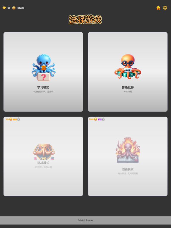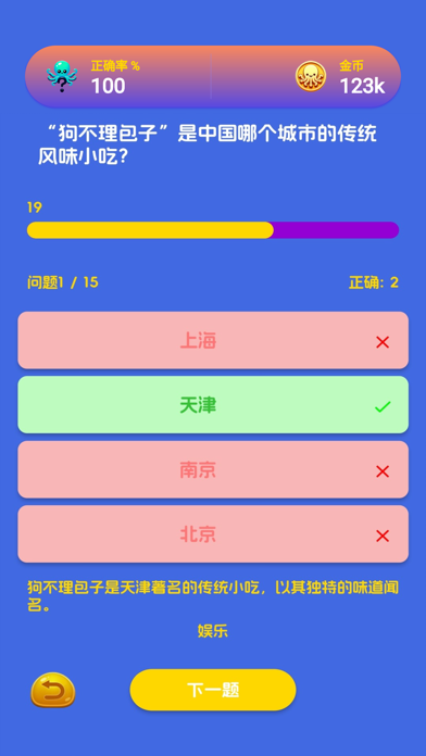 挑战你的大脑,来玩 "小章鱼知识问答" 吧!拥有近万个经过验证的问题,适合家庭、聚会、和办公室放松娱乐。完全免费! 涵盖以下热门类别: 文化 娱乐 历史 地理 科学 享受四种游戏模式: 竞答 大脑集训营 自模式由uoyiz 赚取积分以解锁令人兴奋的功能和关卡。立即下载 小章鱼知识问答,测试你的知识吧! 关键词:中文知识问答, Trivia游戏, 知识竞赛, 问答游戏, 文化问答, 中文Trivia游戏, 知识小章鱼游戏, 中文问答挑战, 文化历史问答, 科学知识问答, 娱乐知识问答, 地理知识问答, 学习游戏, 教育游戏, 益智游戏, 问答挑战, 知识测试 UI enhanced
