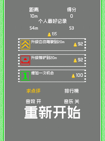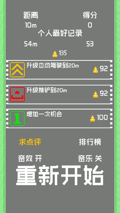 反应迟钝的人免进。不要说它坑爹,不要说它虐心,那只是你的反应速度不够快。 控制赛车只要左右动动手指。看似简单的玩法却蕴含着无限的玄机。不要说什么没用的话,快来游戏里一试身手,看你是眼明手快,还是反应迟钝。 超小的安装包,秒秒钟就下载好了。不要给退缩找借口,有胆就来试一试。 亮点: * 像素风格的游戏界面 * 8位效果的游戏音乐和音效 * 3种道具助你挑战极限 * 游戏只需动一根手指 * 快节奏的游戏,随时修练 * 通过排行榜与高手对决 music by playonloop.comApple 已更新此 App 以显示 Apple Watch App 图标。 细节优化