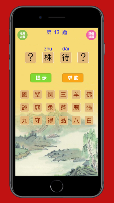 这是一款很好玩的猜成语App!收集了5000历史成语故事,老少兼宜!成语极具教育警醒作用,而且还可以学习拼音哦,希望大家开心的学习中国的传统文化! 本App特色和优势 1. 有拼音和音调!每个成语都有拼音和音调,在选择汉字的时候,同样有拼音,很好的学习拼音的方法 2. 学汉字!选择填成语的汉字,点击即可看到其拼音,很好的学习汉字的方法 3. 历史成语故事!每个成语都是精挑细选的,每个成语都有其典故,我们会壹壹详细展示 4. 不依赖任何第三发软件,安全放心! 市面上很多app为便于开发都会使用其他第三发库,但这很不安全,因为很多第三方软件会使用后门每时每刻都在监控和窃取妳的私人信息,甚至会危害妳的财产安全,我们这款游戏,没有使用任何第三方开发软件,请放心使用 5. 游戏占用体积小,不臃肿!整个游戏不到15M,但却有几千个成语故事!妳值得拥有 6. 简体繁体都有! 这个游戏简体版本,繁体版本都有!希望大家喜欢! 7. 5000道历史成语故事任妳猜! 希望我们的努力,能让妳在中国传统文化学习的道路上,开心快乐!猜成语VS汉字找茬 1.优化应用程序 2. 提高稳定性