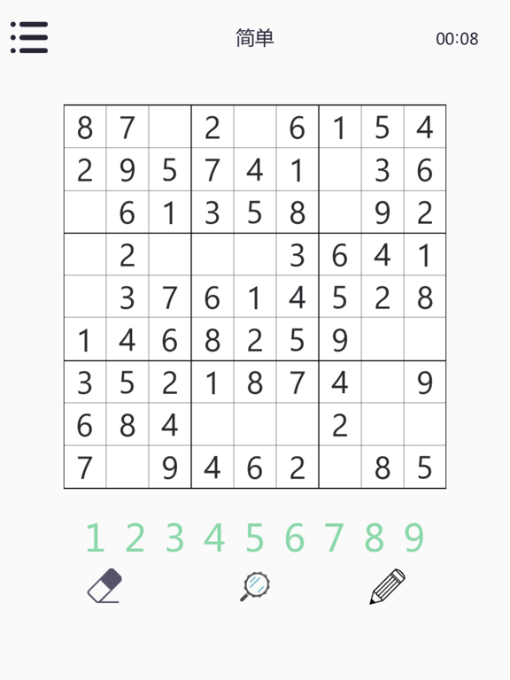 经典数独游戏,多种游戏难度供您选择! 通过数独游戏技巧: 优先填横向或者纵向数字对多的行或者列。 通过排除法来验证选择。 标记可能的数字选择,逐步排除。 最有乐趣的数字解谜游戏。Apple 已更新此 App 以显示 Apple Watch App 图标。 performance improvements