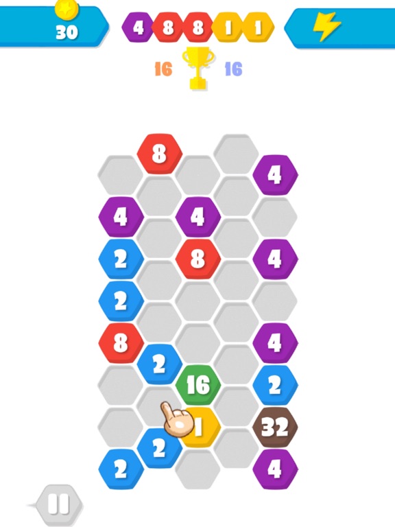 一款结合了风靡全球的2048游戏和三消游戏玩法的全新益智休闲游戏! 比2048更益智,比三消更有挑战性。 游戏中,玩家通过移动六边形数字方块,将四个或者四个以上的相同数字移动到一起就能够变成更大的数字。一直组合出更大的数字直到没有格子放置数字为止。 你能挑战成功2048或者4096甚至8192吗? 不妨一试! Apple 已更新此 App 以显示 Apple Watch App 图标。 - 修复存档问题