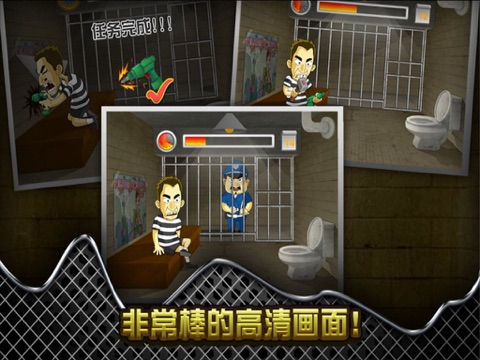 善良无辜的Jack入狱了…。 发挥你敏锐的观察力和智慧帮助他从监狱中逃出吧! 这是一款非常简单又容易上瘾的游戏,让每个玩家都爱不释手! ==========故事背景========= Jack是一个无辜的人,他不幸入狱了…。 监狱里面戒备森严,没有任何逃生工具,还有非常凶悍的看守,聪明的Jack制定了一个14天的计划,在这14天内他要画地图、制作铁锤、钻头、钻孔还要钻穿监狱厚厚的墙…。 让我们来帮助Jack逃狱吧,发挥你无限的耐力及观察力,在规定的时间内完成计划,但是一定要小心,时刻都有看守巡逻,你要动作迅速、果断,被发现可能就再也无法逃离监狱了!!! ==========游戏特征========= - 游戏简单好玩,令人上瘾! - 依靠自己灵活的操控性,以及超凡的观察力来逃生! - 有趣而又紧张刺激的关卡! - 非常棒的高清画面!Apple 已更新此 App 以显示 Apple Watch App 图标。