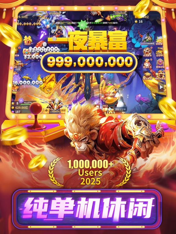 捕鱼游戏3D版本,完美还原街机玩法! 单机版玩法:不氪,不肝,不卷,不耗时! 超轻松休闲,佛系打鱼,躺平拿鱼币! 2026年度巅峰巨制,超百人团队精心打造! 超高倍率,超级好爆,金币道具满屏爆! 一炮百亿,千亿,万亿,不是梦! 带给玩家们前所未有的游戏体验和视觉盛宴! 【五大BOSS】 熔岩龙龟、荧光水母、圣龙降世等游戏BOSS带来沉浸式捕鱼体验! 【四大道具】 独创四大道具助力轻松捕鱼,让你收获满满,绝不空手而归! 【鸿福巨奖】 进入渔场捕鱼,即可领取巨额奖励,阳光普照,人人有份! 【百大鱼种】 原创近百种鱼种,种类繁多,让你目不暇接,仿佛身临其境! 【超大奖励】 精心策划多种活动、游戏礼包,登录就送,拿到手软! 精准弹幕射击,多人真实联机体验,超高倍率,超高回报! 畅爽体验回味无穷,承包你的快乐,是你休闲益智的首选! 协同作战挑战BOSS,探索更多全新海域! 海量渔币天天领,精品礼包送不停! 【特别声明】 本游戏适用于18岁以上用户体验,游戏中不存在任何现金交易和赌博功能, 游戏中所有道具及货币只可用于本游戏体验。 官方倡导绿色游戏,理性消费。 不花一分钱!一样玩捕鱼! 单机休闲!无限鱼币随便打! 轻松回本!不破产!爆率超级高! 优化Game Center成就! 优化美术效果,提升性能! 修复已知BUG!提高稳定性!
