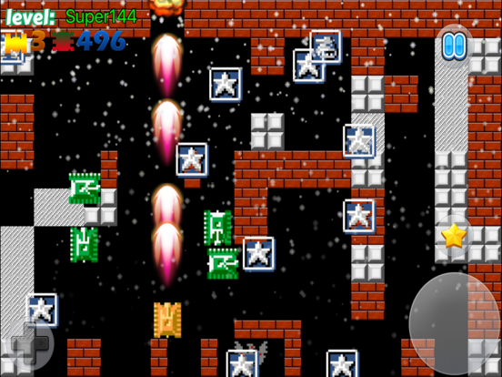 还记得小时玩的坦克大战1990吗,《超级坦克大战1990》在优化其普通模式的基础上,新增了更加华丽炫酷的无限模式和超级模式,还加入了更加刺激、更加困难的挑战模式,各种超难的关卡等着你来挑战! ·无限模式 该模式下玩家没有总部,而改为第三方势力的总部,双方只要一方先找到并消灭该总部即可获胜。 关卡数无限制,武器伤害无限制,敌人ai无限制。不仅你可以暴走,敌人也可以暴走的。 每关必有初始五星隐藏在砖块下面,注意查收哦。 ·超级模式 关卡初始会送大量五星和随机道具,让你很快提升武器,武器最高可达13级。随着武器的升级,坦克的移动速度和子弹的杀伤力会大幅提升,该模式加入了更加华丽的特效:拖尾、粒子系统、震屏、变色等,给玩家超爽的视觉体验! ·普通模式 在坦克大战1990的基础上,优化了摇杆控制及渲染效率,使玩家操作及游戏画面更加流畅。 当你吃够三个五星后,暴走的你,即使一百多个普通关卡你也根本停不下来。 ·挑战模式 各种超乎想象的超难关卡,比如穿越火线、控制子弹、boss旋转坦克、炸弹超人、坚持1分钟、幸运道具、boss永不放弃等,一定会让你有不同寻常的虐心体验。 赶紧来挑战吧,在消灭掉最后的大boss前,一定要永不放弃啊! ----------------------------------------- 有兴趣的朋友,欢迎加入QQ交流群:95850081Apple 已更新此 App 以显示 Apple Watch App 图标。 fix bugs