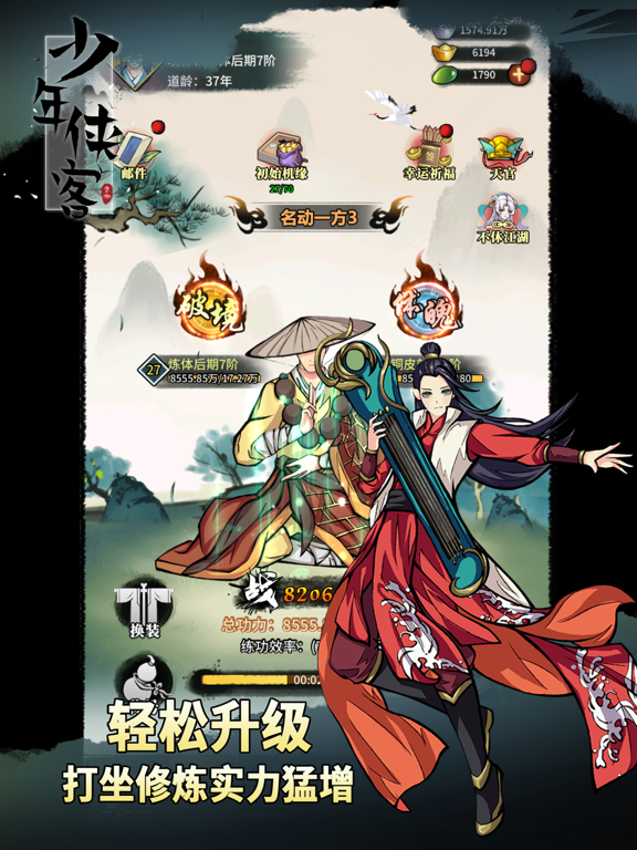 欢迎进入《少年侠客》的世界! 这是一款融合放置挂机、策略养成与门派经营的水墨国风武侠手游。你将化身一派掌门,招募侠客、修炼武功、闯荡江湖,在这个充满恩怨情仇的江湖世界中,书写属于你的传说! 【水墨江湖,武侠梦境】 游戏采用独特的水墨国风美术风格,营造出如画卷般的江湖意境。无论是门派建筑、角色造型还是战斗特效,都精雕细琢,展现东方武侠的独特韵味。 【放置挂机,轻松养成】 不肝不氪的设计理念贯穿全局。你无需长时间在线,离线也能自动获得经验、装备、功法,随时随地轻松提升实力。是上班族的修仙福音,也是佛系少侠的江湖归宿。 【掌门养成,门派传承】 从一人一剑白手起家,到建设自己的门派,广招侠客弟子,传授武学秘籍,不断扩展门派影响力。你将体验从小宗崛起、步入武林巅峰的全过程! 【策略战斗,多样玩法】 游戏包含丰富的玩法:主线剧情、多人竞技场、秘境挑战、奇遇事件、江湖任务等。更有多套武学流派自由搭配,技能组合策略多变,打造属于你的独门绝技! 【良心福利,轻松获取】 每日签到、在线奖励、成长任务、限时活动应有尽有,珍稀侠客、强力装备轻松获得。没有VIP压迫,也没有付费壁垒,让每一位少侠都能畅快闯荡。 放下刀光剑影,沉浸这段潇洒写意的江湖人生。 现在就加入《少年侠客》,你的掌门传奇,即刻启程!1. 限时活动 (1)每日签到:稀有资源签到领 (2)珍珑棋局:掌门皮肤-哪吒 (3)红梅花开:活动限定SP侠客-关羽及其皮肤-武圣.关羽 (4)骰子对决: (5)掌门换装:无名、碧影、天骄 (6)侠客皮肤:虚空.幻影、素素.清心、梦瑶.梦幻、琴仙.仙乐 (7)特惠自选:自选礼包,限时特惠 2. 巅峰论剑:开启第10届