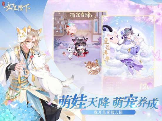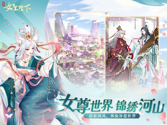开局就是女皇!超人气乙女宫廷养成手游《女皇陛下》携全新玩法恭候陛下莅临! 《女皇陛下》是一款以恋爱养成为主的女性向古风宫廷游戏,在游戏中您将扮演新晋登基的女皇,在风云诡谲的局势变幻、各具特色的百位侍从、纳贤出仕的人才交往、琳琅满目的霓裳羽衣、礼尚往来的玩家互动中收获非比寻常的快乐!异彩纷呈,妙不可言,快来以第一视角体验女皇的传奇人生吧! 【侍君如花 共度良宵】 后宫侍君三千人,三千宠爱在谁身?各个时代、不同种族的美男穿越时间空间与成为女帝的您相会,他们的外貌、性格、喜好各不同,杀伐果断的护国战神梓龙、温柔深情的天使长米勒、蛮横霸道的海洋领主帝鲲泷、傲娇毒舌的妖狐神乐……总有一款适合您。与侍君达到一定亲密度,更可以解锁他们的皮肤,欣赏心爱之人的全新面貌! 【稚子童趣 同享天伦】 早慧难言尽,七月知诗书。从呱呱坠地、知书学礼到及笄远嫁,做母亲的可谓操碎了心。对皇储进行不同的教养,可以使他们长成迥异的性格,从而获得不同的战斗/生活技能。成年的皇子可用于与其他玩家联姻,当然若您心有不舍,让他们留在身边,陪着出征的将士接受锻炼也是极好的。 【女为己容 又添华服】 云想衣裳花想容,春风拂槛露华浓。作为一名尊贵的女帝,咱们的衣橱里可少不了各式各样的收藏:礼宾的霓裳、私访的微服、睡觉时宽松舒适的大袍、舞剑时精神轻便的劲装……从头戴的钗子、肩披的薄纱、手持的权杖甚至每天的妆容都不容忽略,这样才算得上是一名精致的女帝呢! 【一见如故 频交新友】 何当共剪西窗烛,共话巴山夜雨时。人生一快事,乃有知己相交。《女皇陛下》搭载丰富的社交系统,您可以通过跨服聊天与不同区服的玩家交流游戏心得,也可以与本服其他玩家交换子女,结秦晋之好,更可以在国子监拜师收徒,切磋技艺、传授经验、共御外敌! 【联系我们】 客服QQ:3007292423 玩家群:7567996891.更新app信息 2.游戏添加新玩法