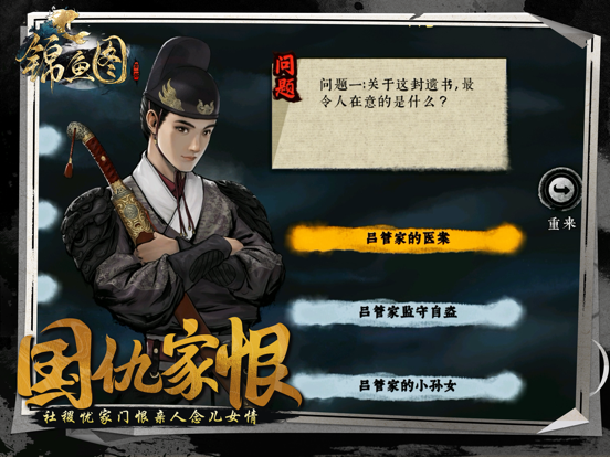 —游戏特色— 【明代史诗】 郑和下西洋、土木堡之变、家国保卫战…这些原本仅能在史书上阅读到的故事,将在你的眼前上演。跟随主角一行,体验那些被史书尘封住的辛秘往事。 【换位人生】 飞檐走壁擒贼人,足智多谋破迷案,沉浸式体验锦衣卫的生活。结交形形色色的友人,感受锦鱼图世界里的江湖豪情。 【多重结局】 多达40+条的支线结局,你可以选择平凡的度过一生,也可以成为动荡局势中的英雄。每一个看似微不足道的选择,可能都将给你的生活带来翻天覆地的变化。 【花样游戏】 密室中的沙盘演绎,跑酷抓捕盗贼,解谜,战斗等多种内嵌小游戏,不重复不枯燥,简单上手,轻松游玩! 【剧情演绎】 全流程配音,有声剧情漫画,上佳的视听效果,生动的交互对话。飒爽女侠,俏皮妹妹,慈祥家人,角色性格鲜明、栩栩如生。 —联系我们— 希望诸位在锦鱼图世界中享受到乐趣,能够留下“在锦鱼图上花费时间还是值得的”的想法,对我们而言就是最大的鼓励了! 《锦鱼图》官方Q群:913580396 感谢诸位锦衣卫大人们的支持与关注!欢迎体验《锦鱼图》第壹部,您可以免费试玩第一章节的部分内容,并可前往主界面"解锁完整版”一次性解锁完整内容。 起舞绣春刀,万物皆可消! 【锦鱼图 · 第壹部】 故事主线共包含四大章节,共计37个小游戏,接近100幅插画视频,20万字剧本,全流程剧情配音。 -章节壹「郑和下西洋宝藏」 -章节贰「波斯日月包刀之谜」 -章节叁「土木堡之变」 -章节肆「北京保卫战」 *注意:同一个苹果账户仅可解锁1次完整版,更换登录账号后请使用新的苹果账户进行解锁。
