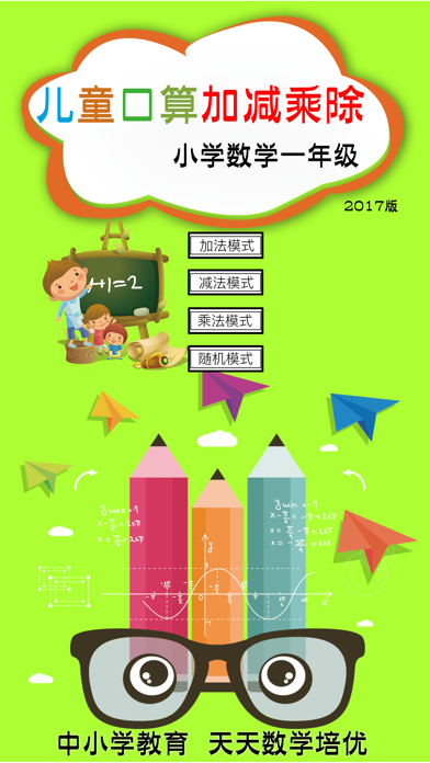 适合5岁-10岁的儿童学习数学使用。 共8000题的口算作业与练习,学习100以内加法减法、100以内乘法除法; 与小学数学一年级课本课程同步,可作为课后作业的一课一练使用。 【联系我们】 ○ 建议反馈: junlas0555@gmail.com ◆ 熊猫教育,致力于为4至12岁儿童提供最优秀的互联网教育软件!Apple 已更新此 App 以显示 Apple Watch App 图标。 优化文本对齐方式; 优化性能体验bugs;