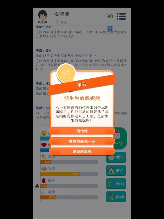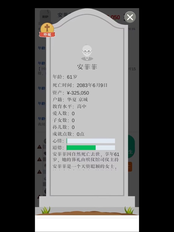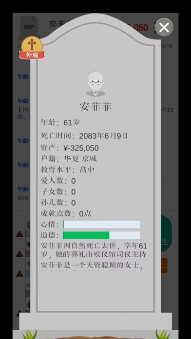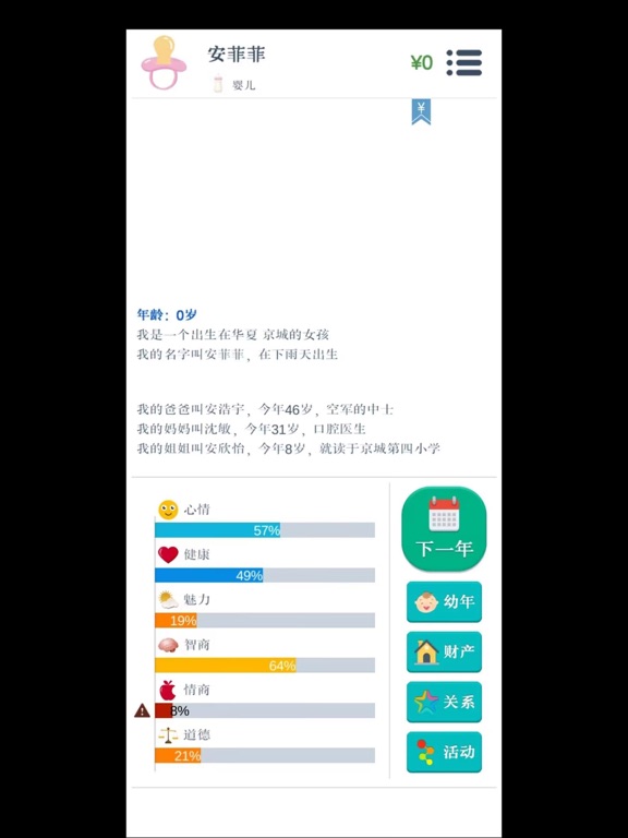 第二人生是一款轻度的模拟人的一生的游戏。游戏中,玩家可以体会各式各样不同的事件,不同的家庭,可以生儿育女,还会拥有孙子孙女,从婴儿开始,你的属性会随着各种事件而变化,当然你也有很多选择可以做,就看你想做怎样的一个人。 游戏12群: 829690962 游戏11群: 686929997(已满) 游戏10群: 873023397(已满) 游戏9群 : 801934416(已满) 游戏8群 : 929787629(已满) 游戏7群 : 859579923(已满) 游戏6群 : 194913740(已满) 游戏5群 : 985389799(已满) 游戏4群 : 985318268(已满) 游戏3群 : 985160795(已满) 游戏2群 : 794990777(已满) 游戏1群 : 689514343 ( 已满 )fix bugs