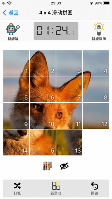 滑动拼图AI求解器--用AI玩、提示和解决滑动拼图。 陷入了一些你无法解决的步骤?试试这个软件吧! [特点】。] - AI提示:提示下一步要做的动作。 - AI解决:你输入谜题的数字,应用程序将为你解开谜题,并一步步向你展示动作。 可以解3x3,4x4和5x5的滑动拼图。 - 两种游戏模式。 图片拼图游戏模式 数字拼图游戏模式 - 多个图块的滑动。 每次移动一个以上的图块。 触摸空白方块旁边的最后一个方块,然后滑动,每次都可以滑动这些方块。 - 玩不同大小的拼图 现在,你可以玩3x3, 4x4, 5x5, 6x6, 7x7等大小的拼图。 - 撤销你的最后一步动作(或由AI提示的最后一系列动作)。 - 自动保存游戏进度 - 在图片拼图游戏模式中使用你的相册中的图片。 - 解开谜题后回放你所有的动作。 所以你甚至可以录制和分享一个视频来炫耀你的成就。 [自动保存] 游戏进度会自动保存,所以不用担心,即使你不小心退出应用,你也可以准确地回到你正在玩的游戏进度。 [图片拼图]。 - 显示/隐藏图块数字序号。 关掉图块数字序号会使游戏真正变得更有挑战性。 - 显示/隐藏的解开后的拼图。 - 在图片拼图游戏模式中使用您的相册中的图片。 - 使用提供的几十张精心挑选的高清图片中的一张作为拼图。 [AI提示]。 AI提示对3x3,4x4和5x5,6x6的谜题效果良好。 对于7x7的谜题,由于其巨大的计算复杂性,在某些情况下(非常罕见),可能无法在合理的时间内计算出一个提示。 [如何玩]。 游戏的目的是将有数字的牌排列成一个连续的序列,右下方为空白。 单一图块滑动。 在屏幕上滑动或点击空白处旁边的图块,使图块移动。 多图滑动。 触摸空白处旁边的最后一块图块,然后滑动来一次滑动这些图块。 请注意,当撤销一个动作或计算分数时,由AI提示产生的多图块滑动或一系列动作被视为 "一个动作",而不是一个多步骤的动作。 1. 性能改进 2. 4种语言支持
